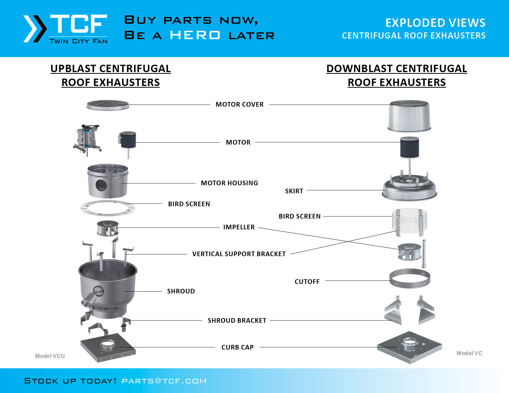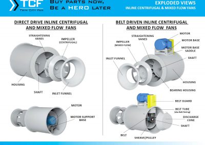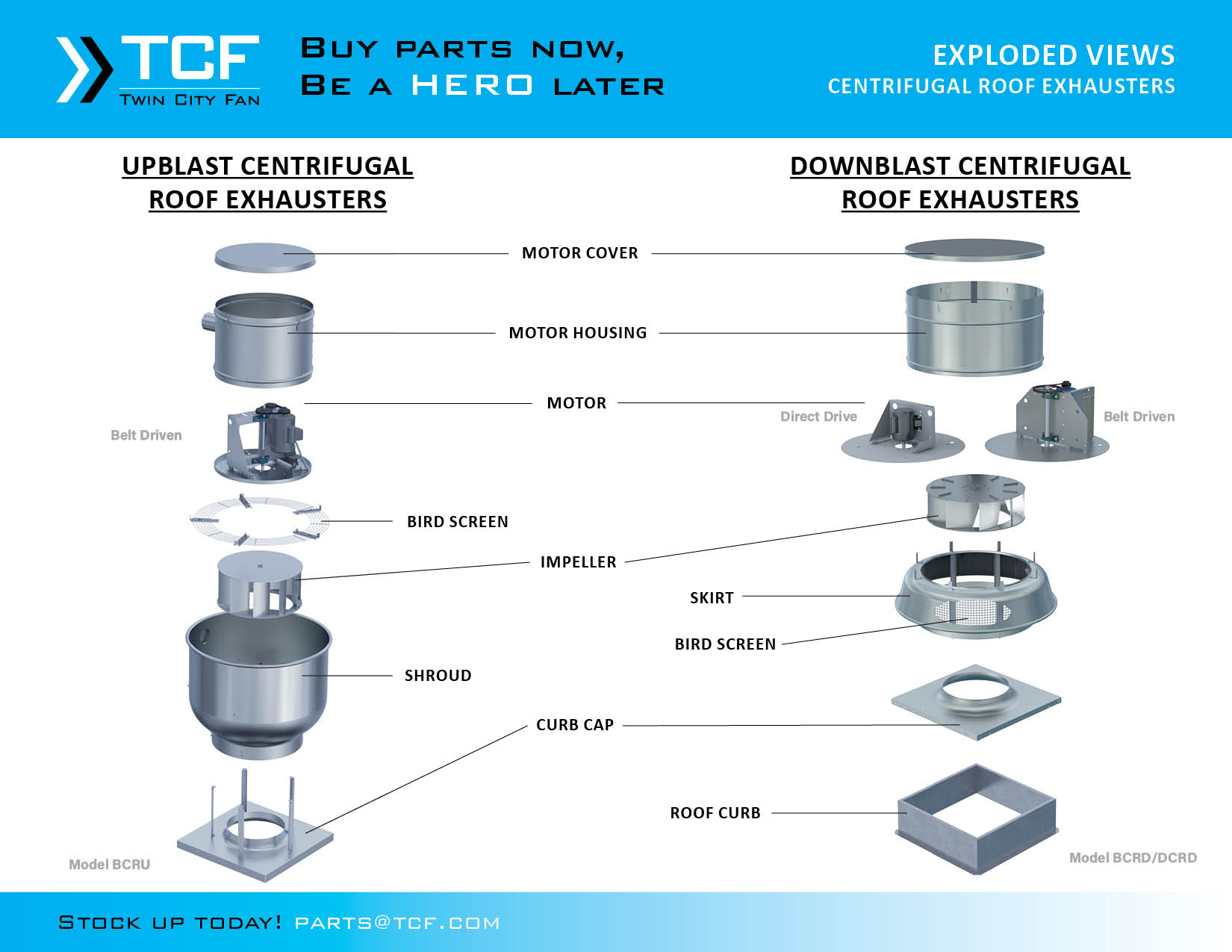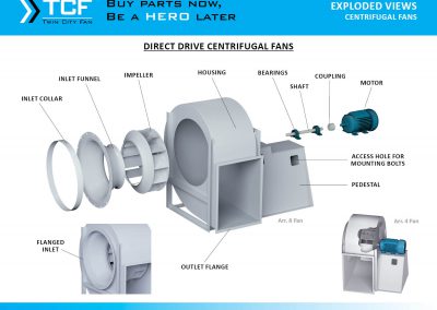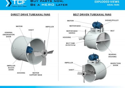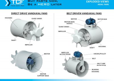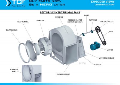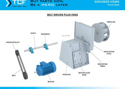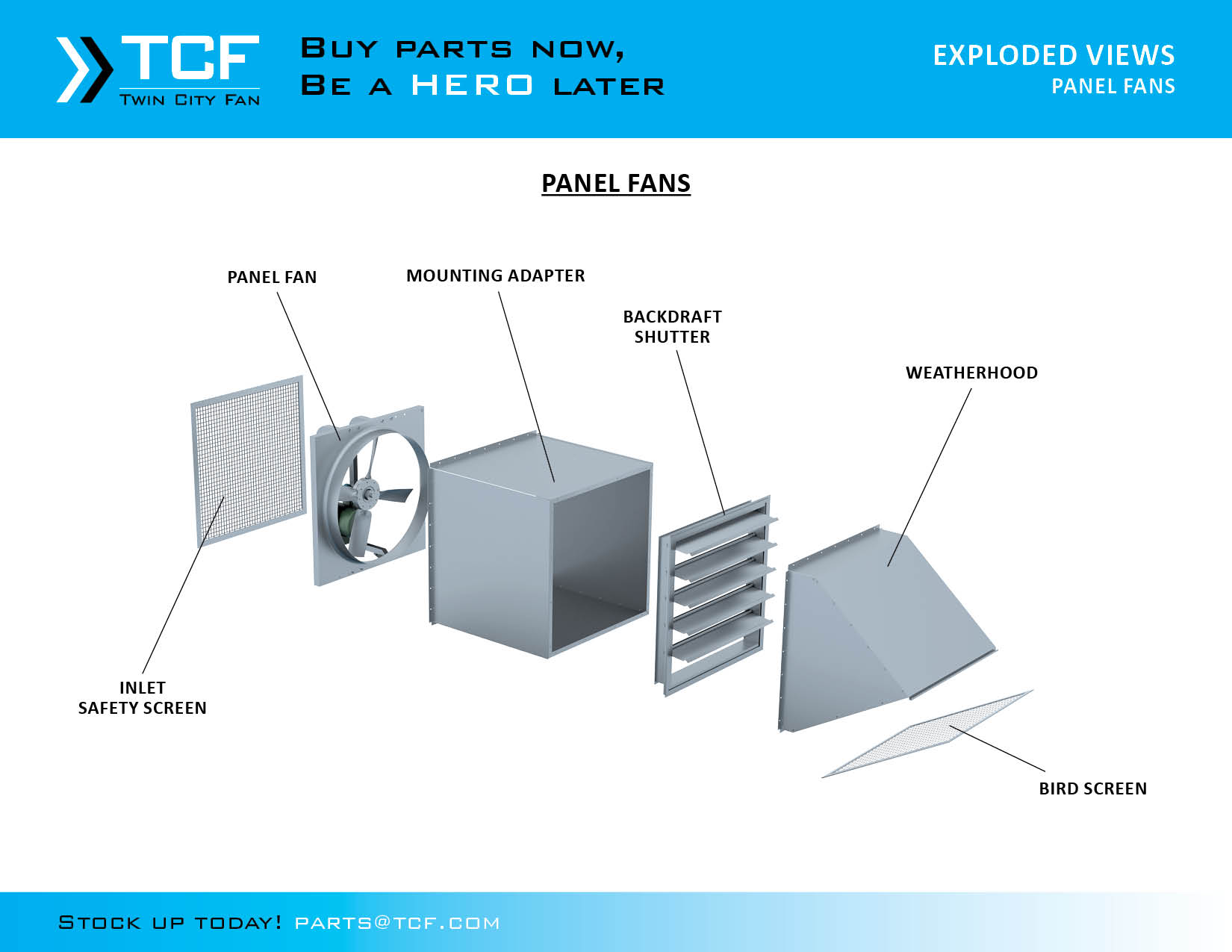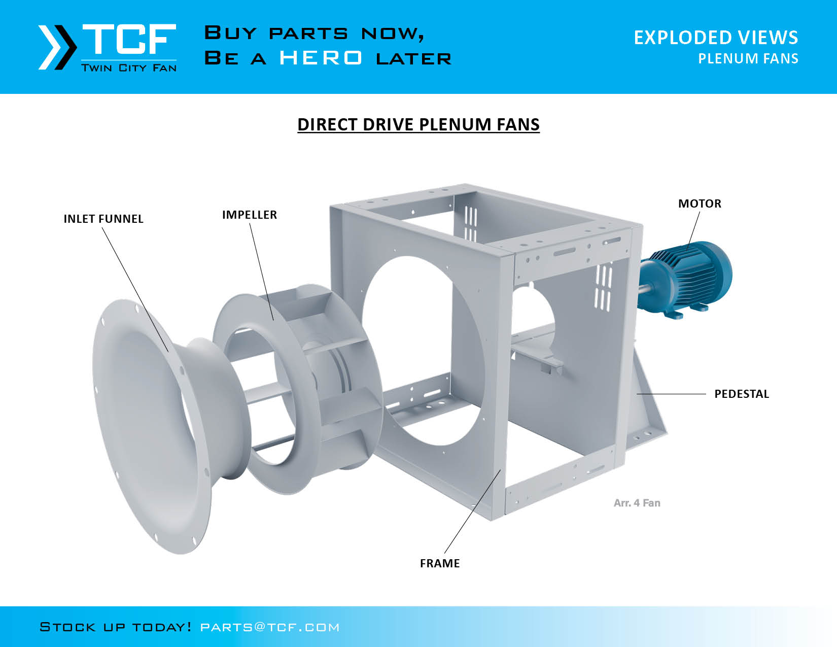 Whether you need common replacement parts or a backup supply of spare parts for process critical applications, Twin City Fan can help keep you up and running. Not sure which part you need? No problem, contact our Parts Department at 888-444-4823. Our team can assist you in selecting the right part for your fan – regardless of the manufacturer.