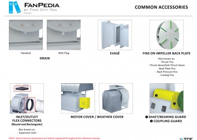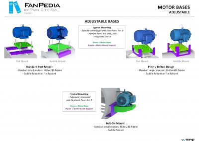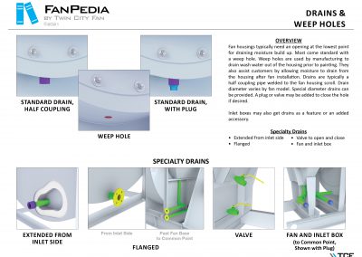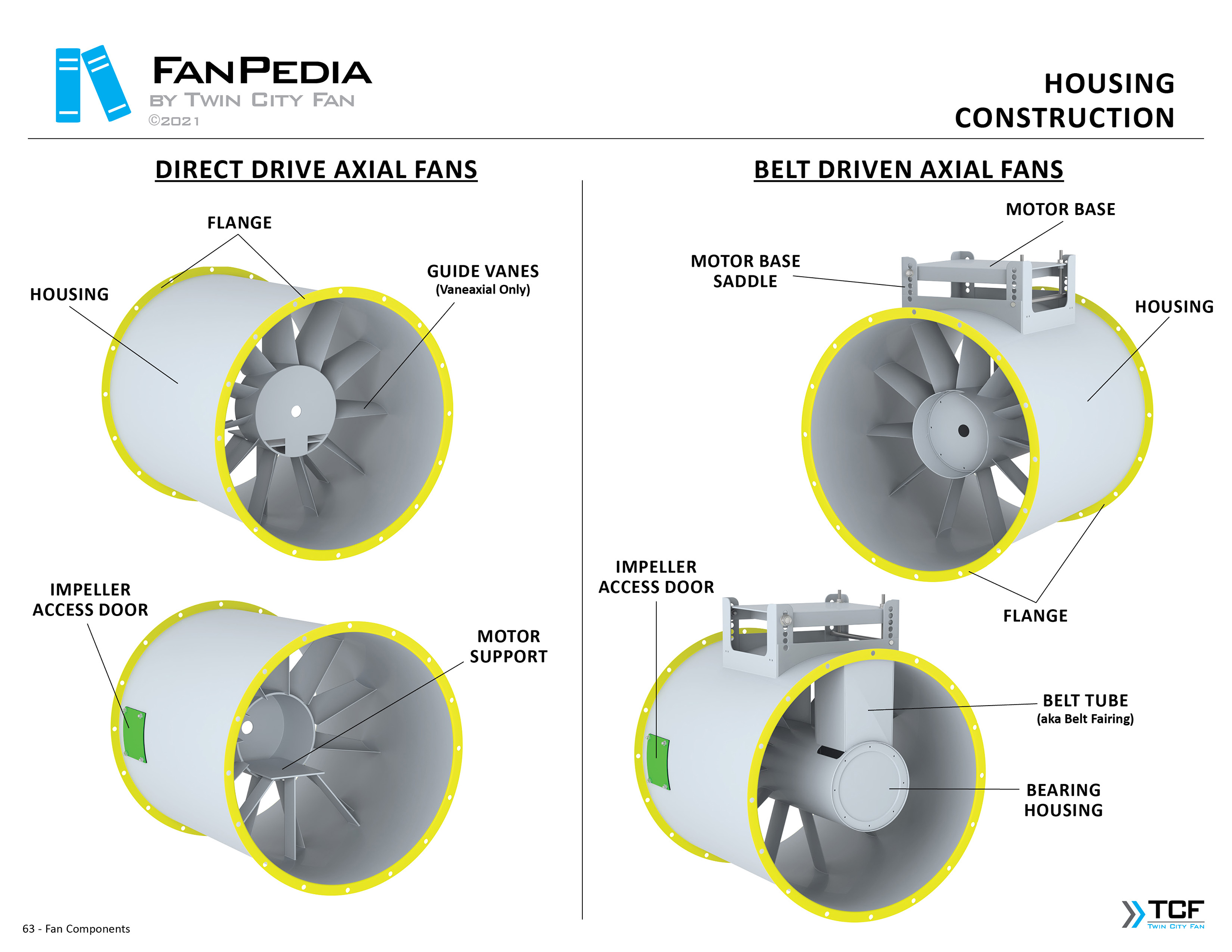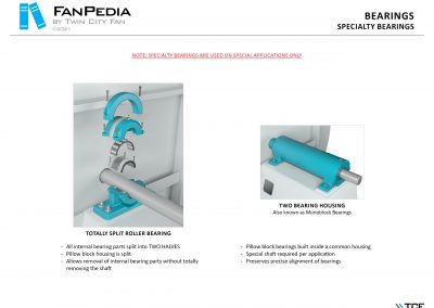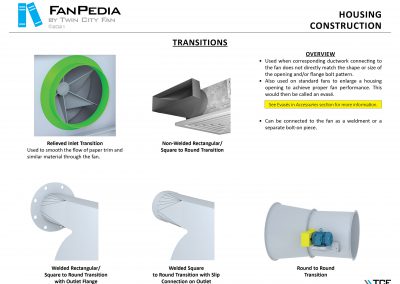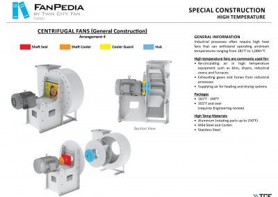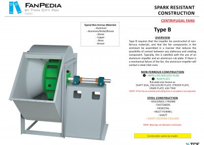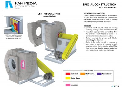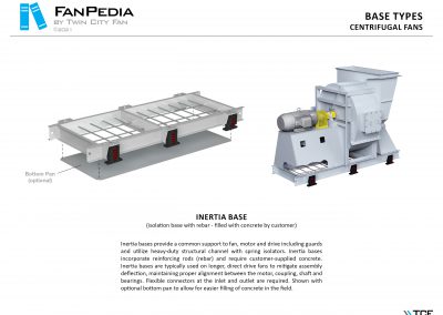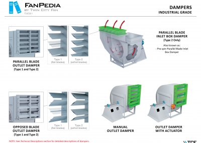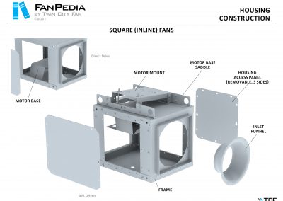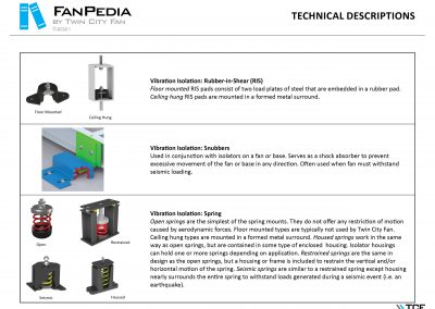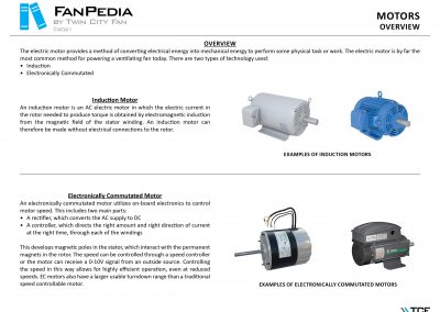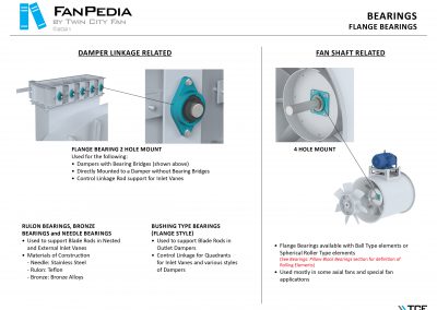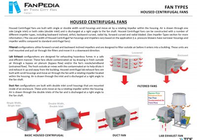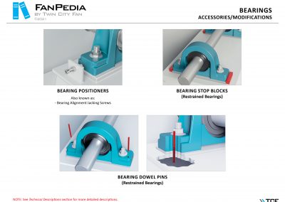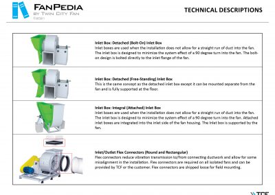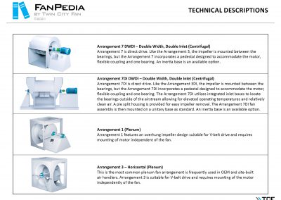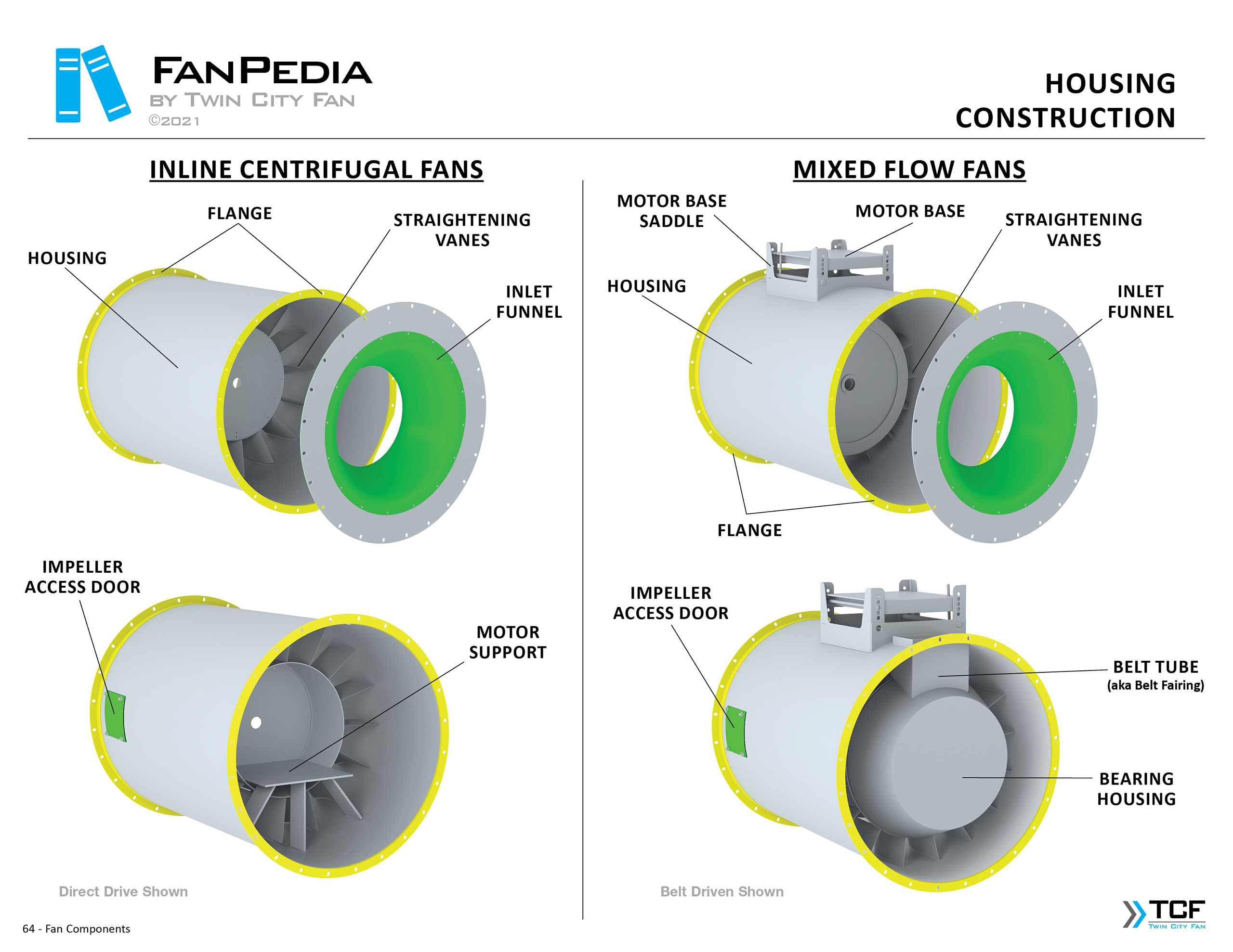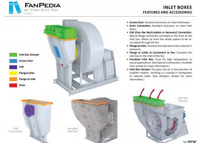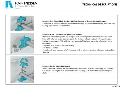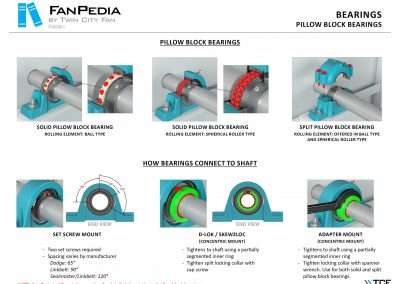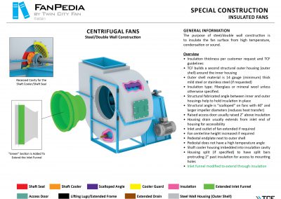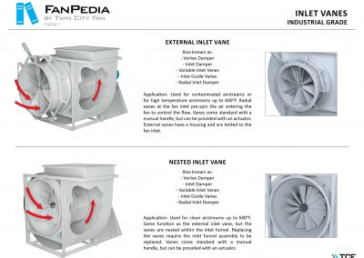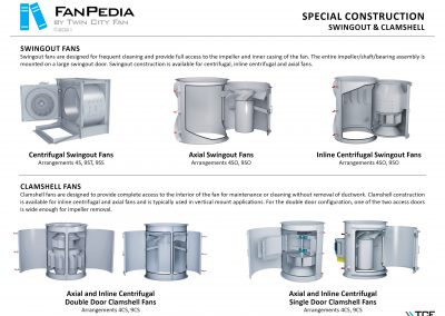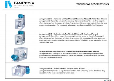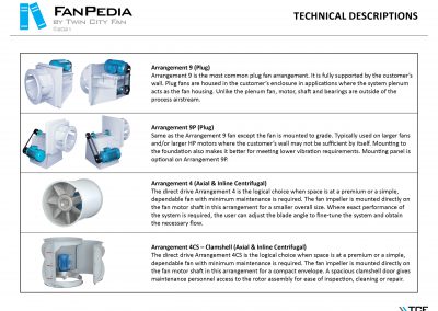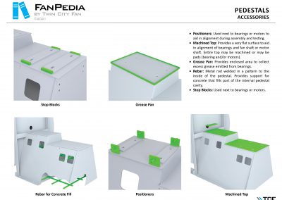 FanPedia The Fan & Blower Encyclopedia (click on thumbnails to view image galleries) Fan Basics Fan Types Exploded Views Fan Arrangements Impeller Types, Impeller Orientation & Hub Types Discharges & Impeller Rotation Impeller Airflow & Rotation (Axial Fans) Motor Positions Fan components Housing Construction Motors Motor Bases Shafts Pedestals Inlet Funnels / Venturis (Centrifugal) Bearing Types, Accessories & Modifications Fan Construction Spark Resistant Construction High Temperature Construction Insulated Fans Nominally Leak-Tight Construction RTO Construction High Moisture Construction Swingout & Clamshell Construction Fan Accessories Common Accessories Shafts Pedestals Base Types Vibration Isolation Dampers Inlet Vanes Grounding Devices Inlet Boxes Evasés Drain & Weep Holes Motor Positioners Shaft Seals Split Housings Piezometer Rings Technical Descriptions
