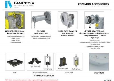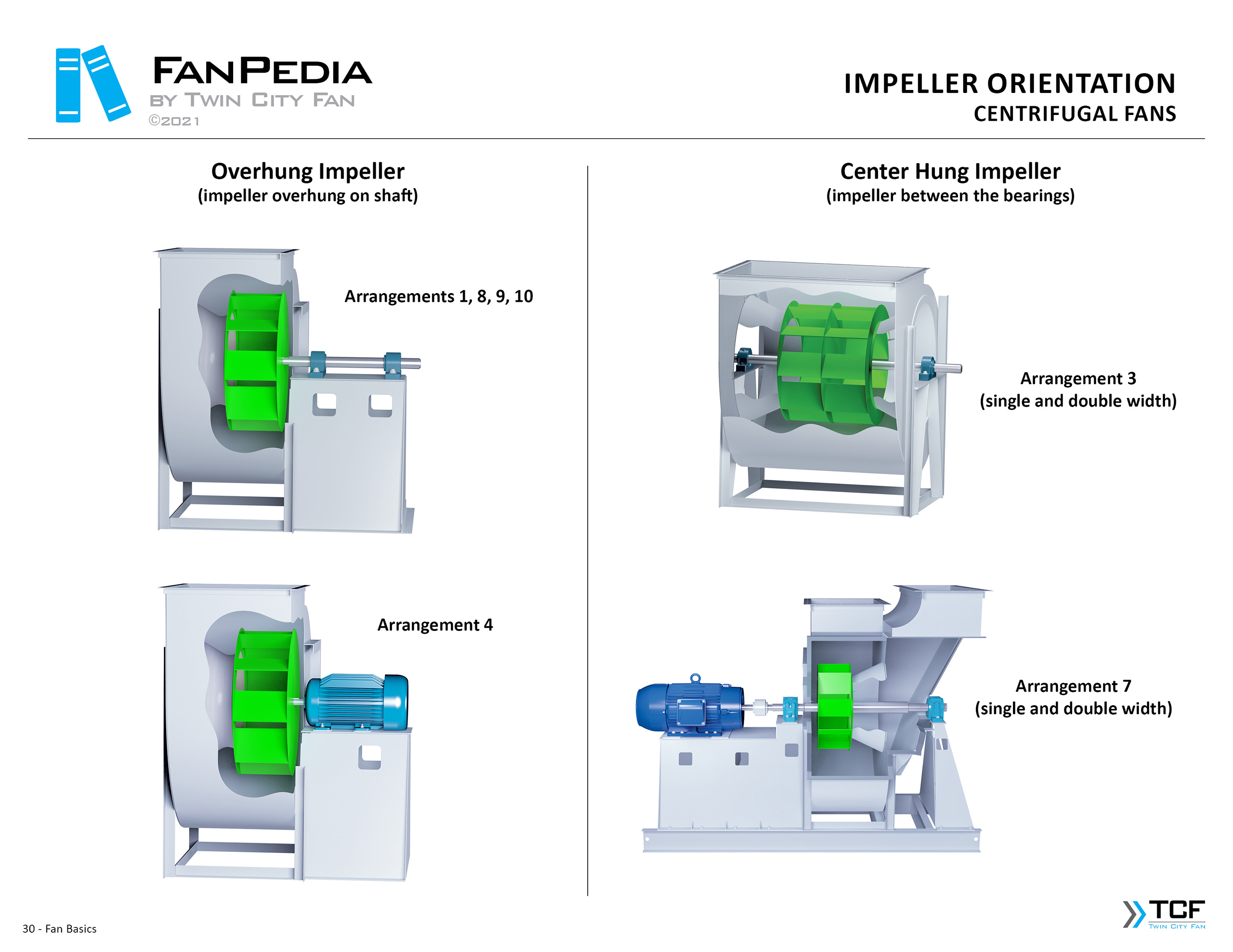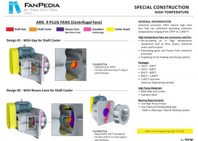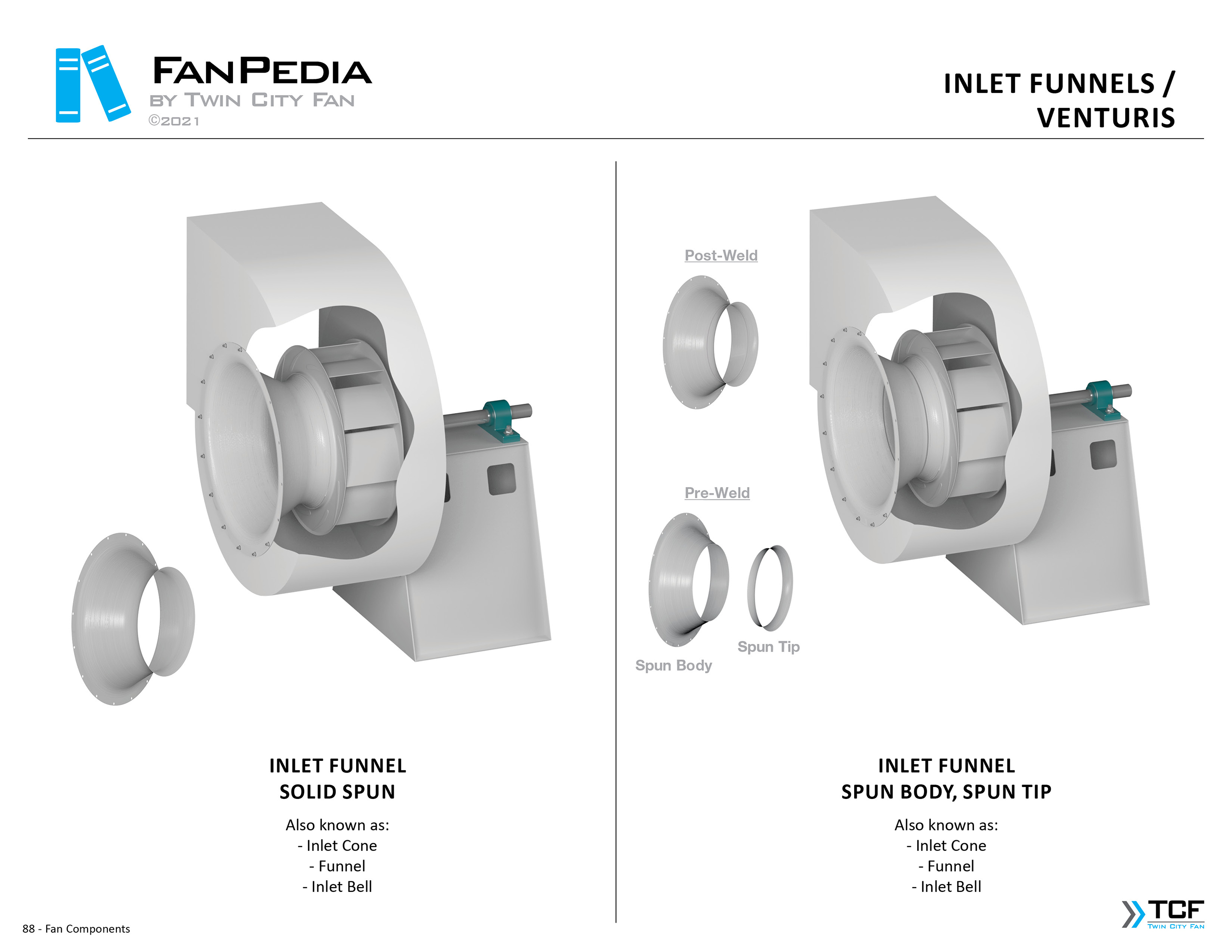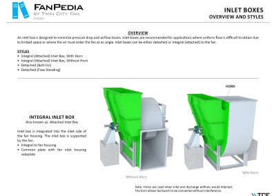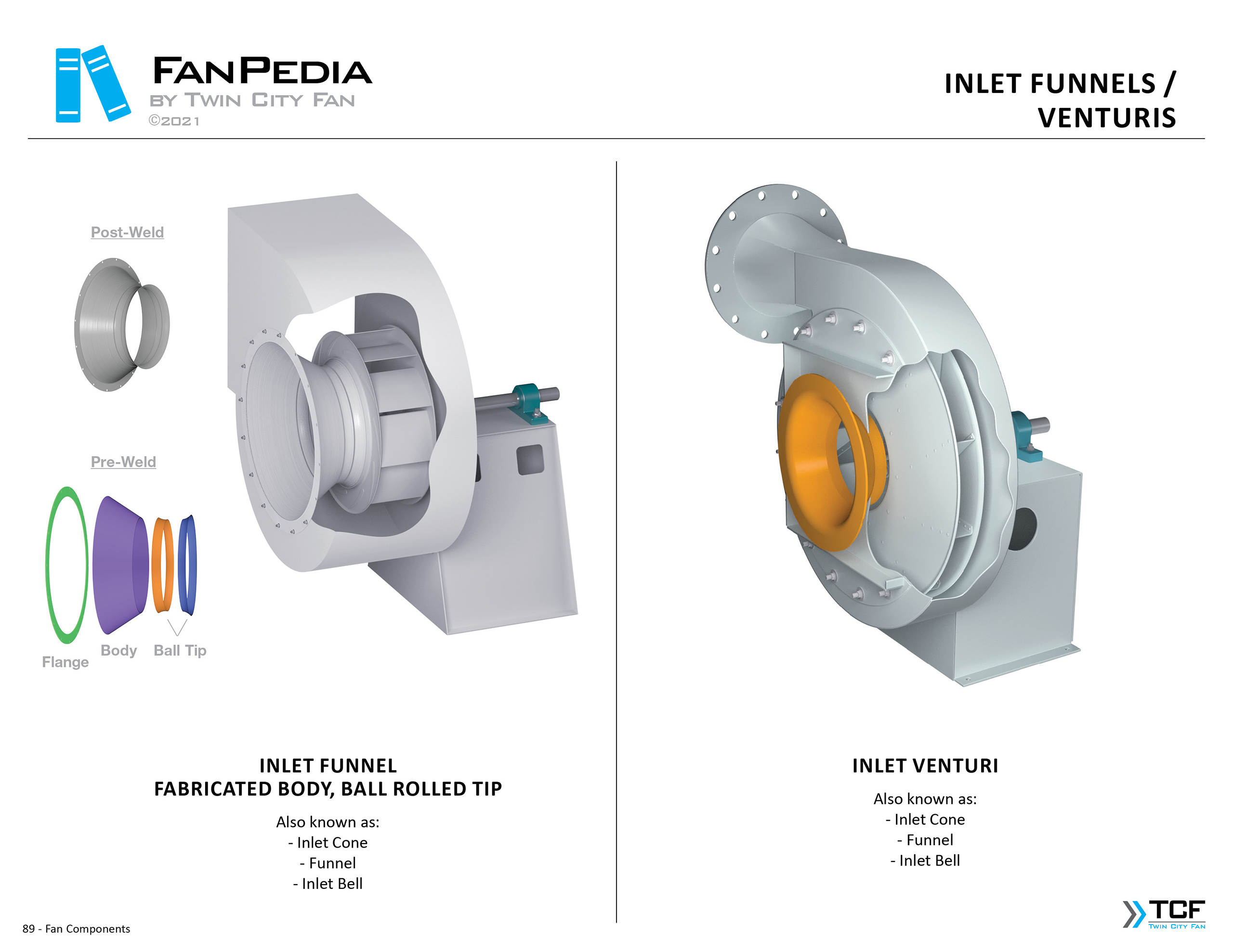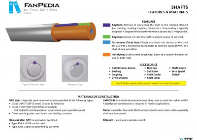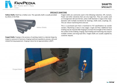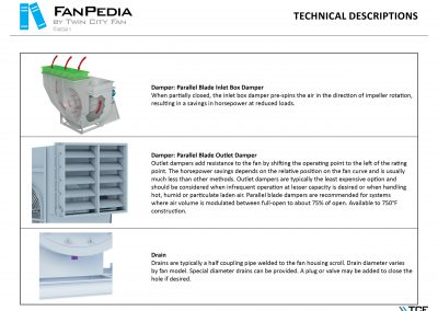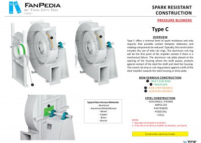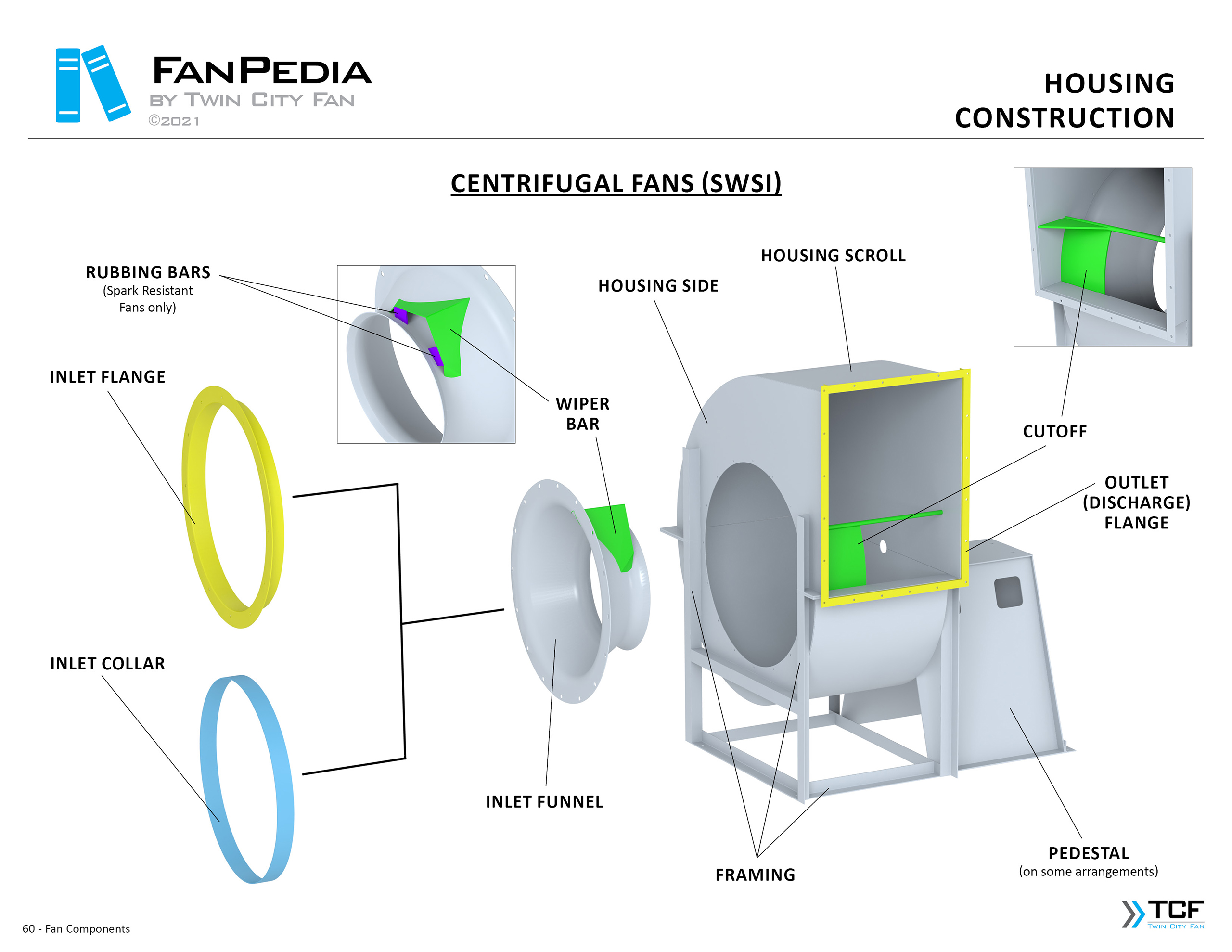 FanPedia The Fan & Blower Encyclopedia (click on thumbnails to view image galleries) Fan Basics Fan Types Exploded Views Fan Arrangements Impeller Types, Impeller Orientation & Hub Types Discharges & Impeller Rotation Impeller Airflow & Rotation (Axial Fans) Motor Positions Fan components Housing Construction Motors Motor Bases Shafts Pedestals Inlet Funnels / Venturis (Centrifugal) Bearing Types, Accessories & Modifications Fan Construction Spark Resistant Construction High Temperature Construction Insulated Fans Nominally Leak-Tight Construction RTO Construction High Moisture Construction Swingout & Clamshell Construction Fan Accessories Common Accessories Shafts Pedestals Base Types Vibration Isolation Dampers Inlet Vanes Grounding Devices Inlet Boxes Evasés Drain & Weep Holes Motor Positioners Shaft Seals Split Housings Piezometer Rings Technical Descriptions