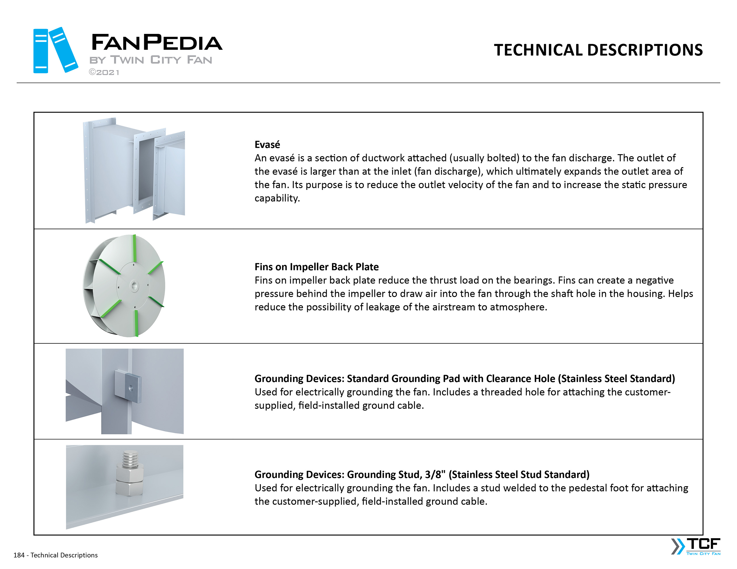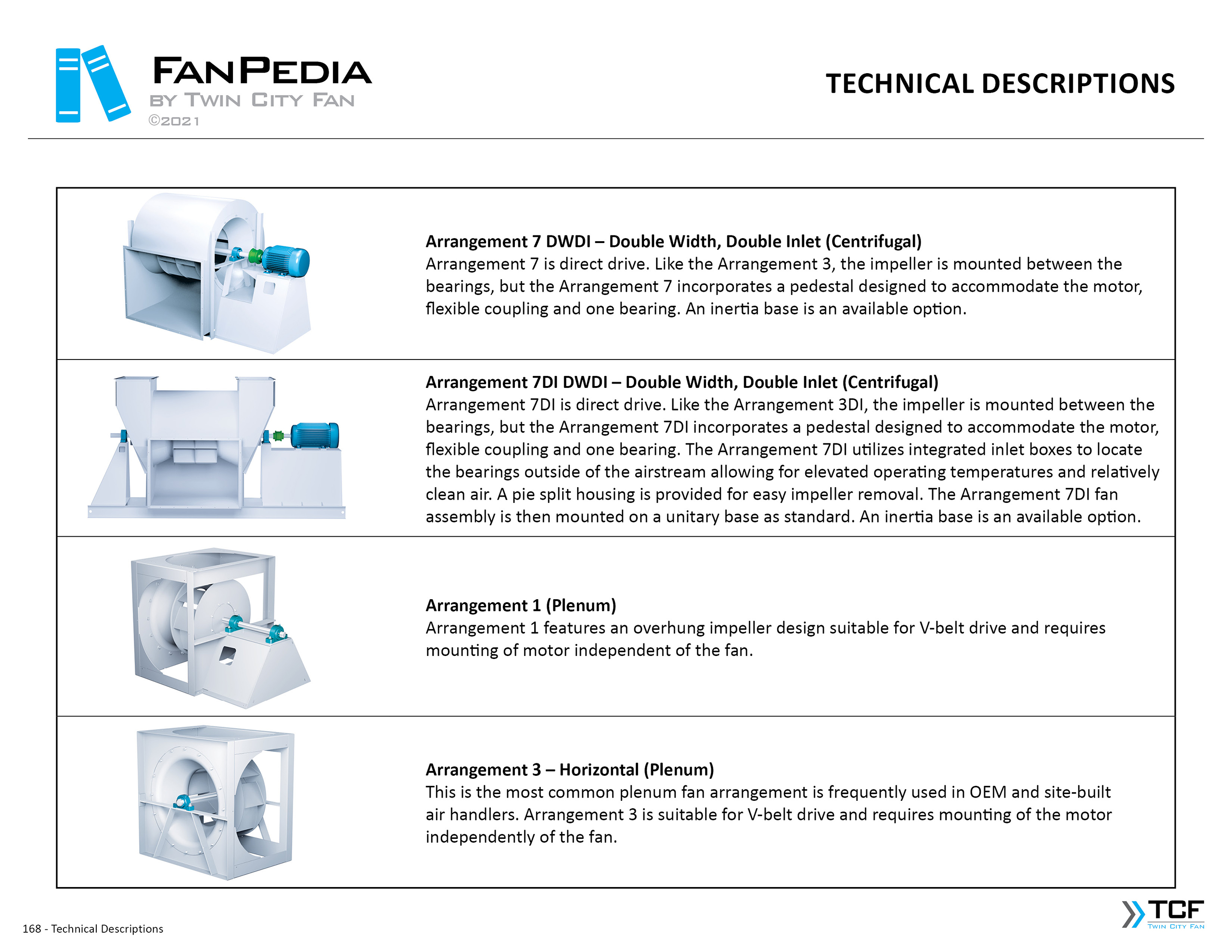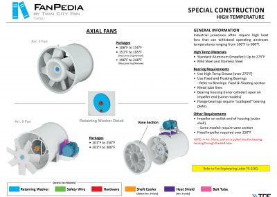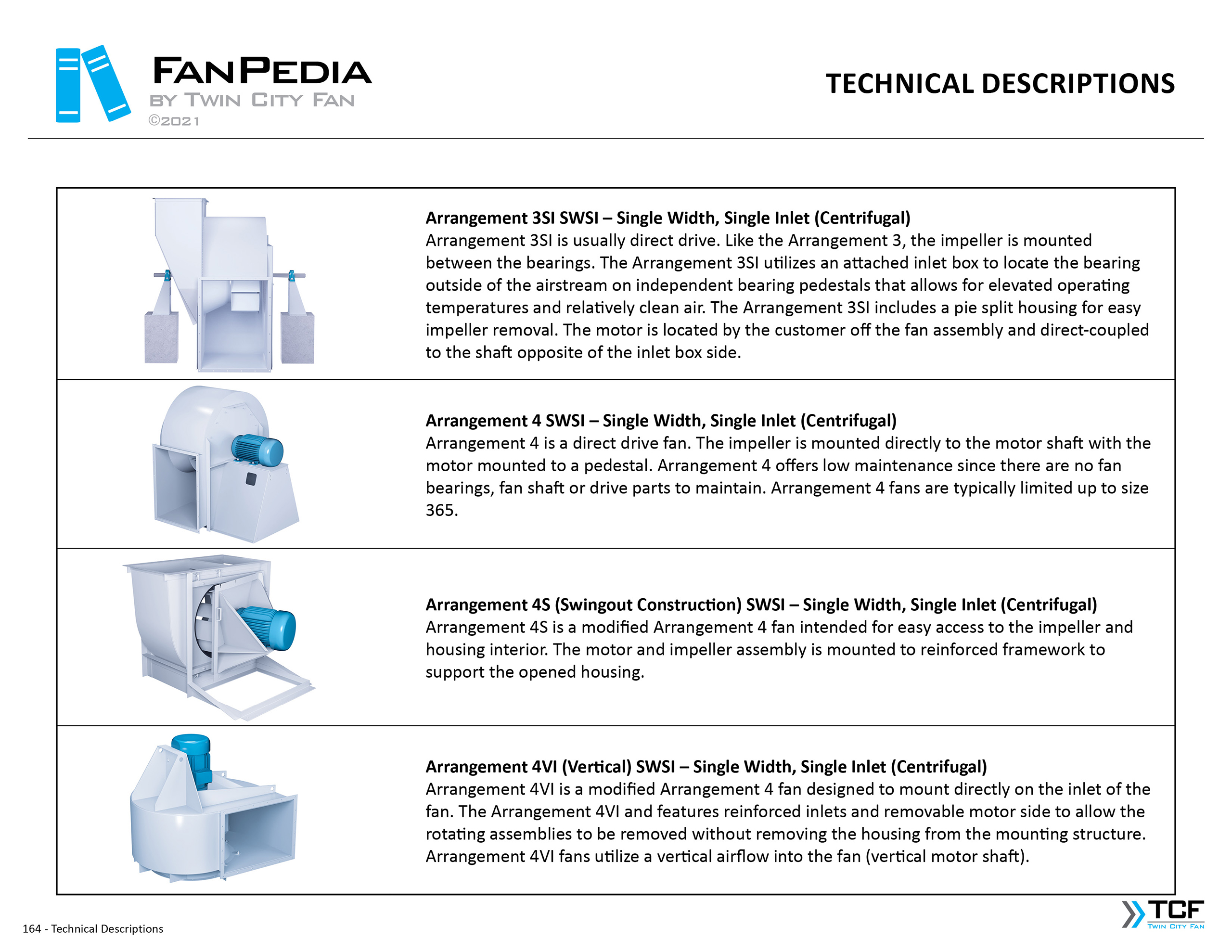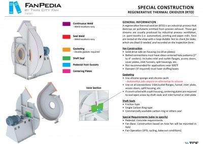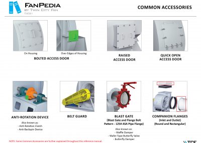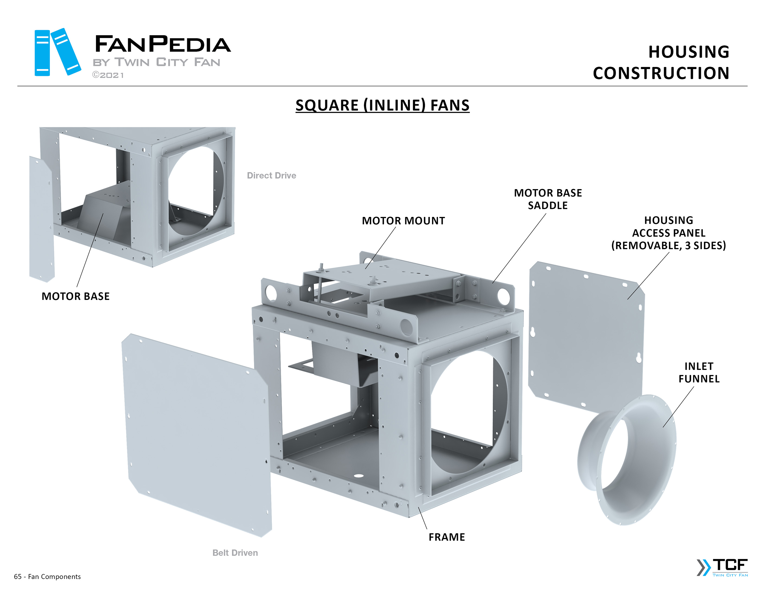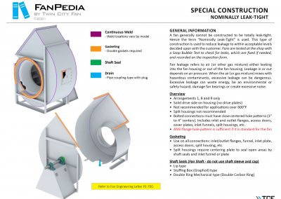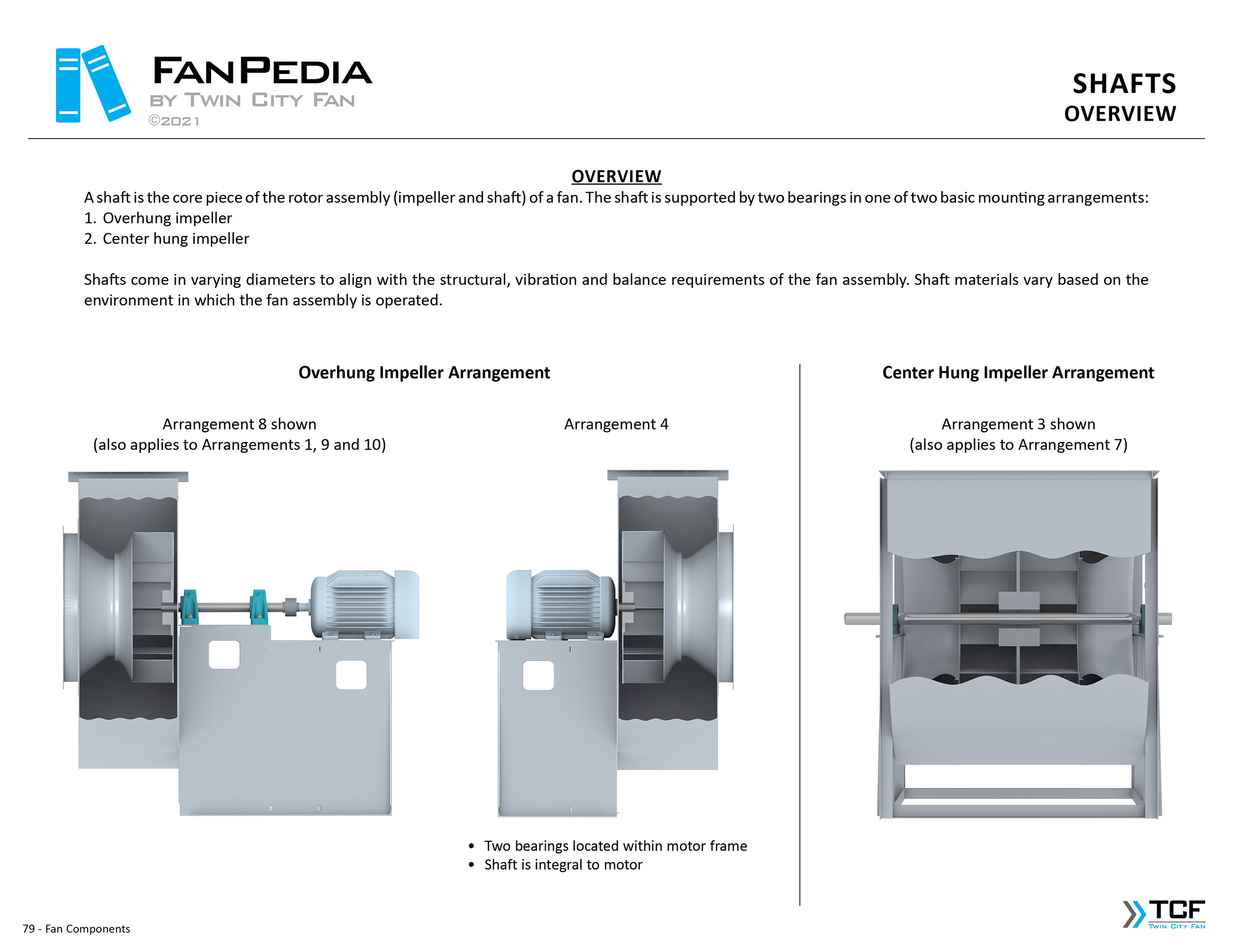 FanPedia The Fan & Blower Encyclopedia (click on thumbnails to view image galleries) Fan Basics Fan Types Exploded Views Fan Arrangements Impeller Types, Impeller Orientation & Hub Types Discharges & Impeller Rotation Impeller Airflow & Rotation (Axial Fans) Motor Positions Fan components Housing Construction Motors Motor Bases Shafts Pedestals Inlet Funnels / Venturis (Centrifugal) Bearing Types, Accessories & Modifications Fan Construction Spark Resistant Construction High Temperature Construction Insulated Fans Nominally Leak-Tight Construction RTO Construction High Moisture Construction Swingout & Clamshell Construction Fan Accessories Common Accessories Shafts Pedestals Base Types Vibration Isolation Dampers Inlet Vanes Grounding Devices Inlet Boxes Evasés Drain & Weep Holes Motor Positioners Shaft Seals Split Housings Piezometer Rings Technical Descriptions