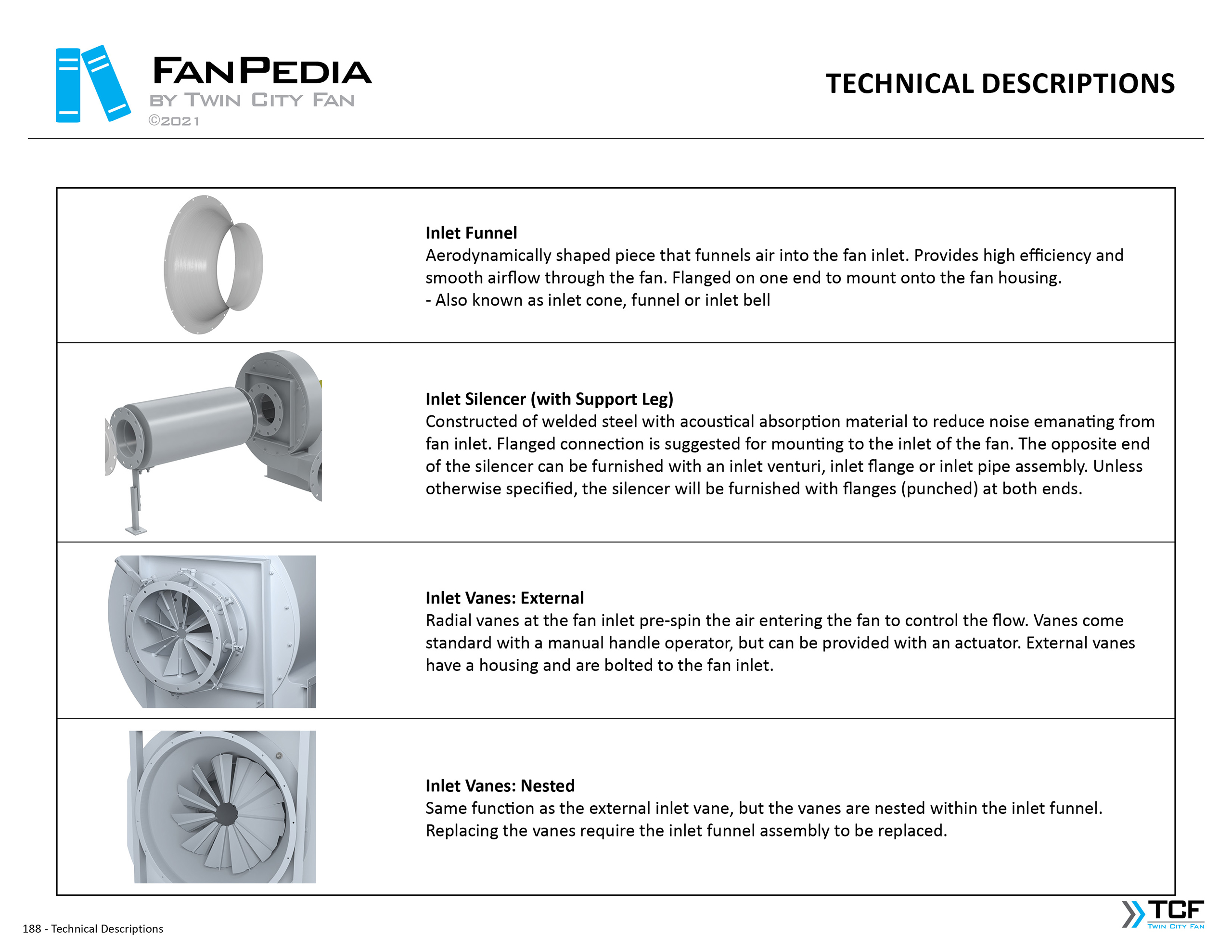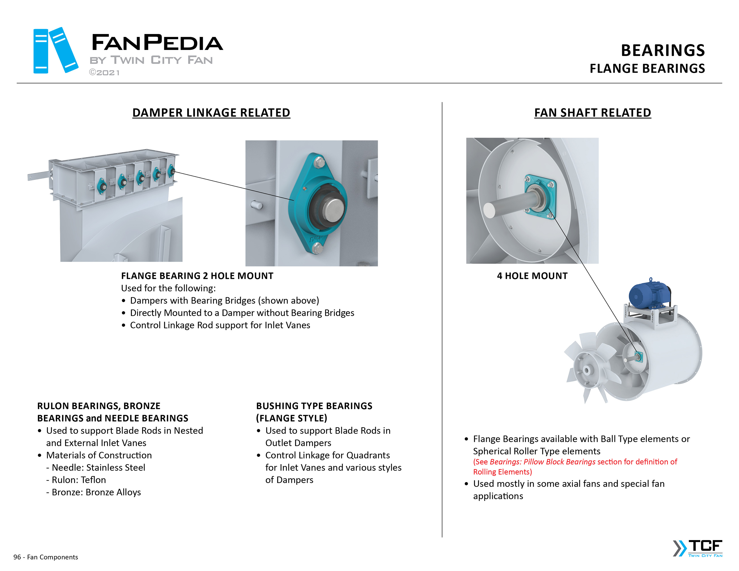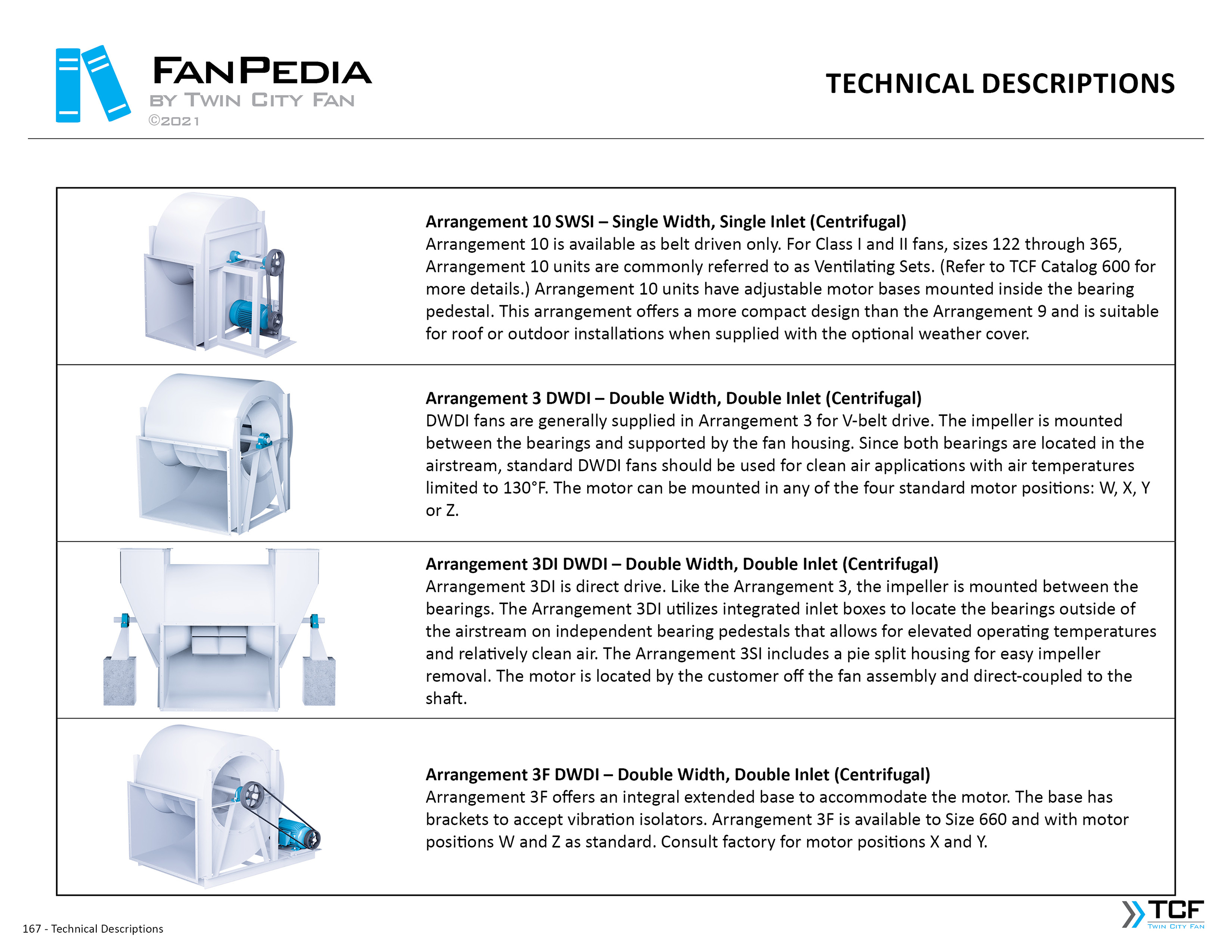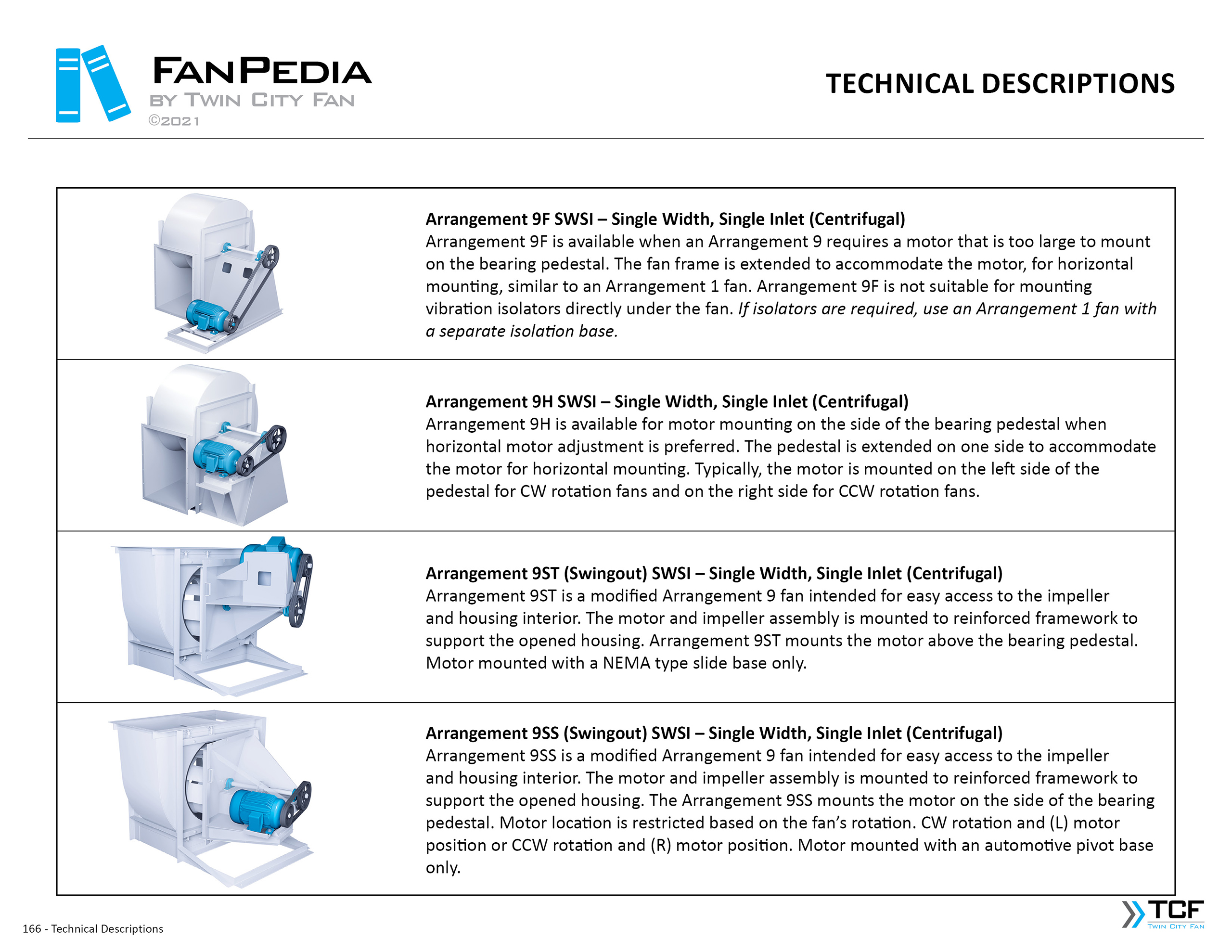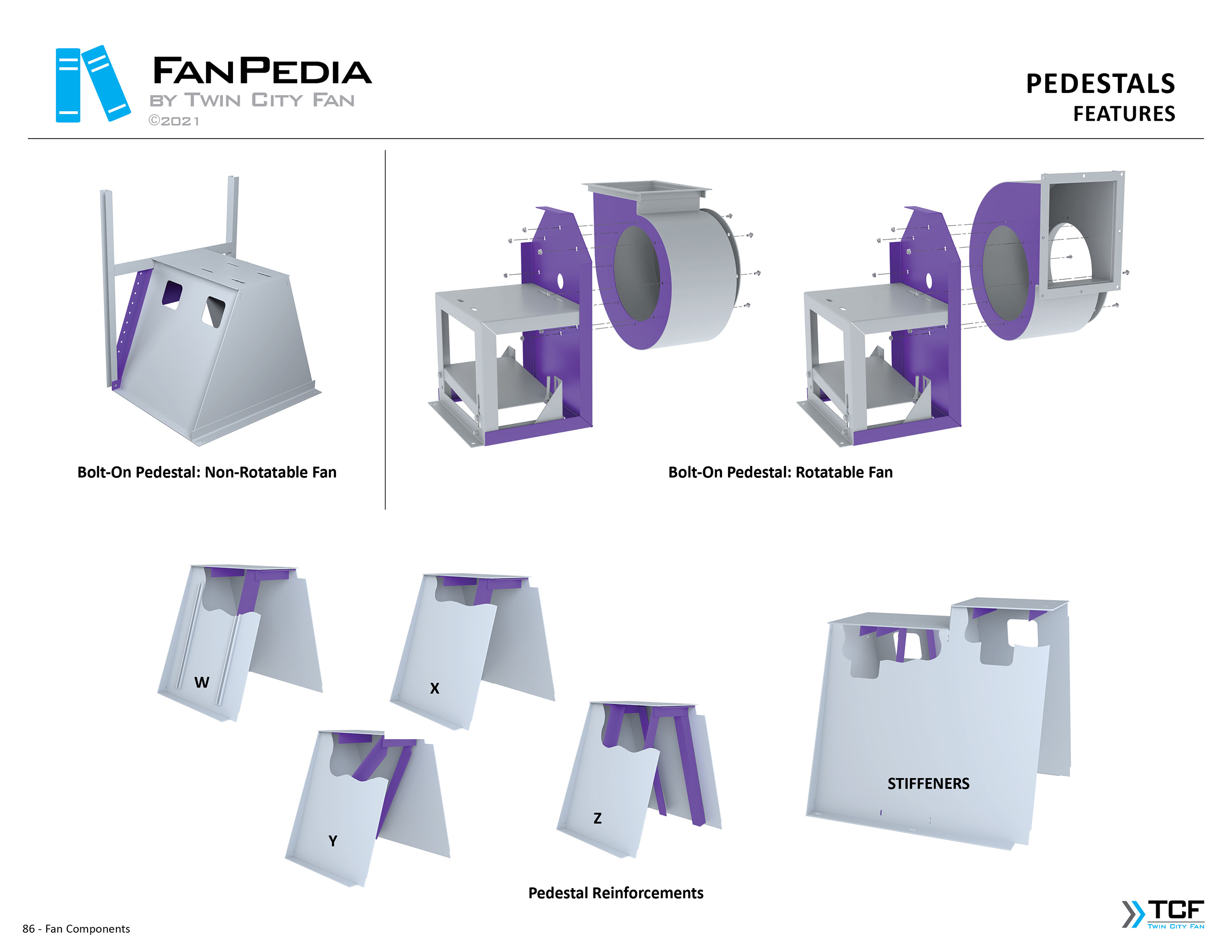 FanPedia The Fan & Blower Encyclopedia (click on thumbnails to view image galleries) Fan Basics Fan Types Exploded Views Fan Arrangements Impeller Types, Impeller Orientation & Hub Types Discharges & Impeller Rotation Impeller Airflow & Rotation (Axial Fans) Motor Positions Fan components Housing Construction Motors Motor Bases Shafts Pedestals Inlet Funnels / Venturis (Centrifugal) Bearing Types, Accessories & Modifications Fan Construction Spark Resistant Construction High Temperature Construction Insulated Fans Nominally Leak-Tight Construction RTO Construction High Moisture Construction Swingout & Clamshell Construction Fan Accessories Common Accessories Shafts Pedestals Base Types Vibration Isolation Dampers Inlet Vanes Grounding Devices Inlet Boxes Evasés Drain & Weep Holes Motor Positioners Shaft Seals Split Housings Piezometer Rings Technical Descriptions