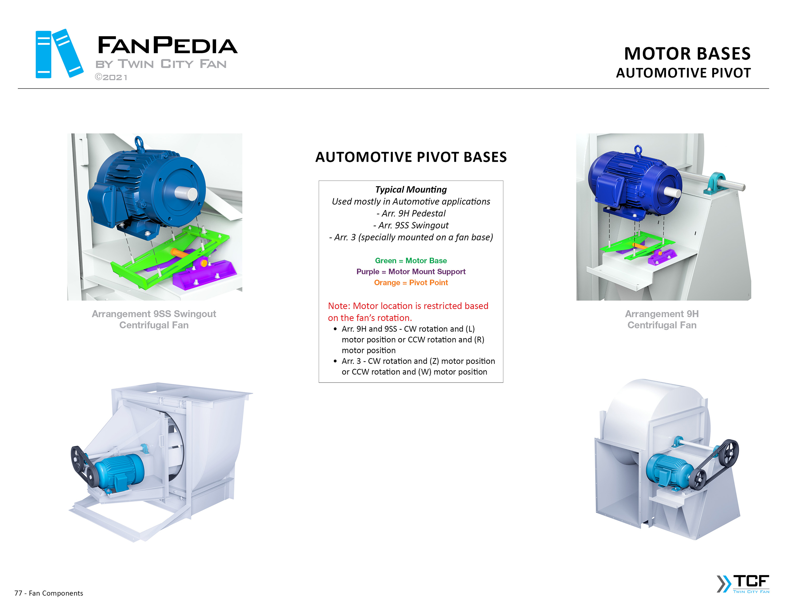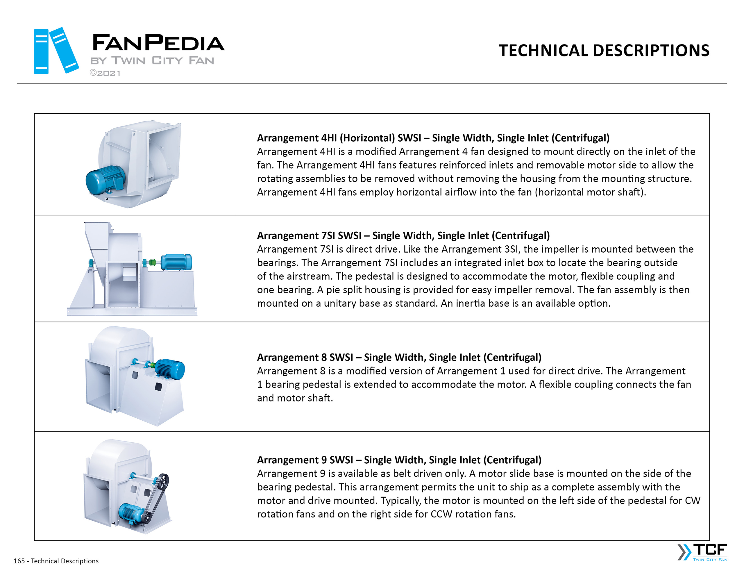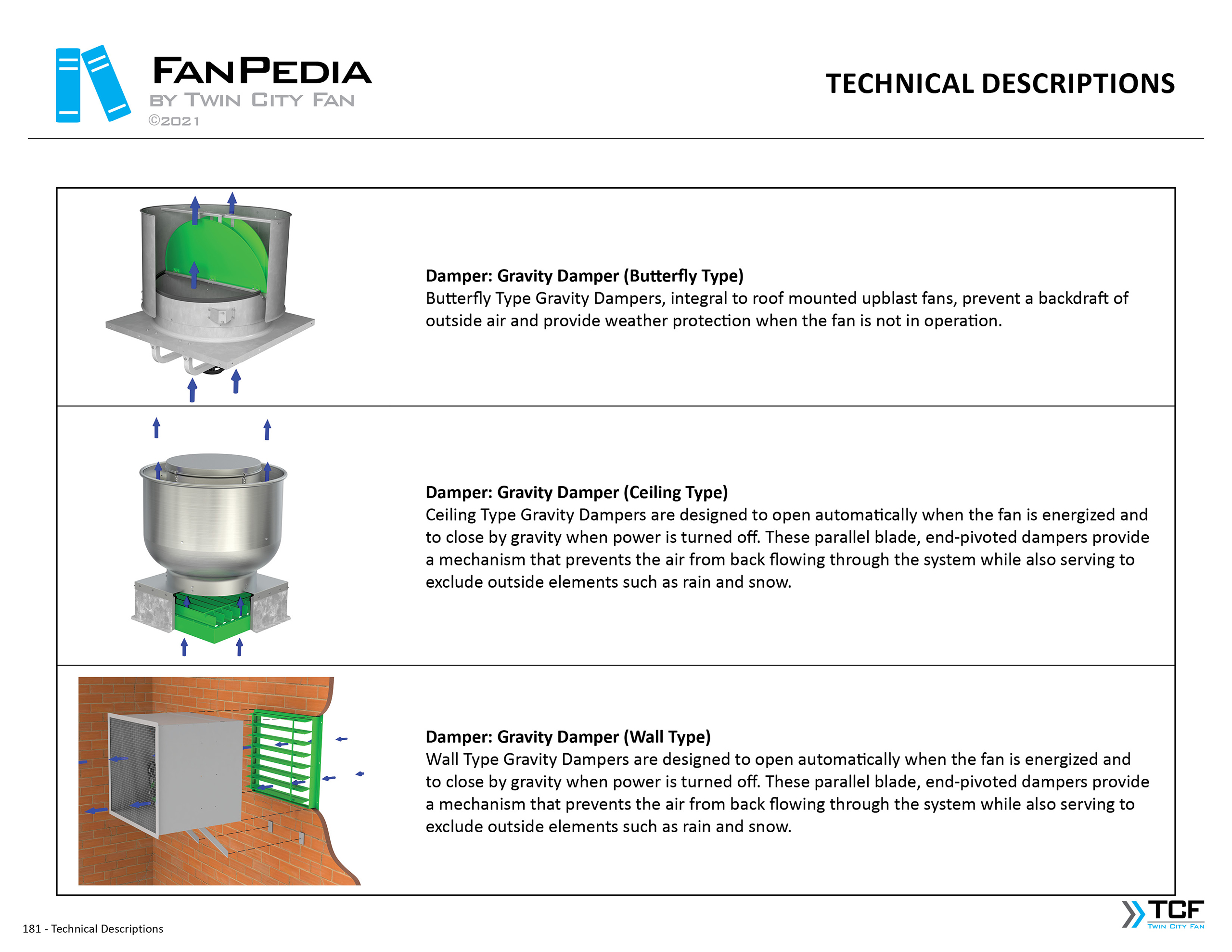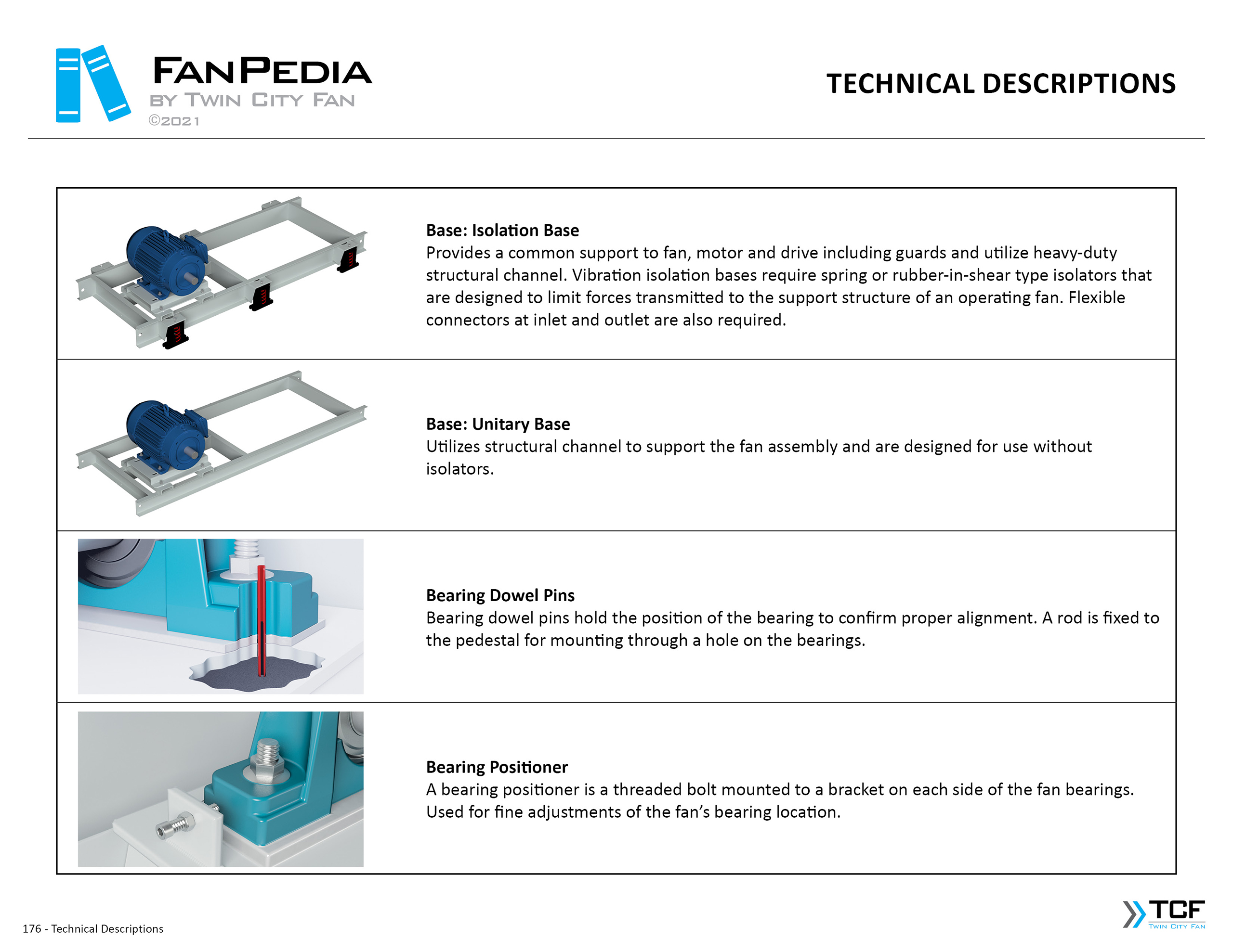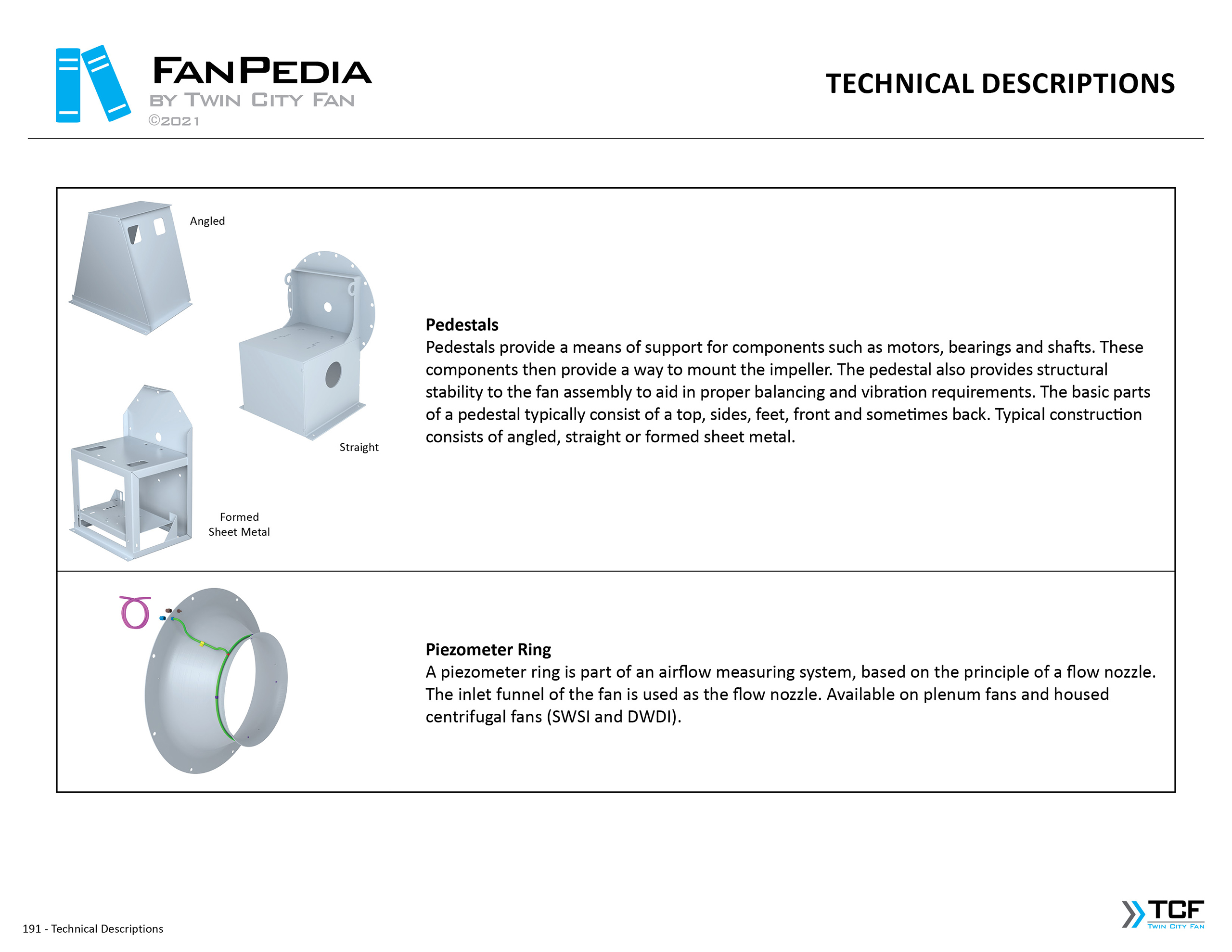 FanPedia The Fan & Blower Encyclopedia (click on thumbnails to view image galleries) Fan Basics Fan Types Exploded Views Fan Arrangements Impeller Types, Impeller Orientation & Hub Types Discharges & Impeller Rotation Impeller Airflow & Rotation (Axial Fans) Motor Positions Fan components Housing Construction Motors Motor Bases Shafts Pedestals Inlet Funnels / Venturis (Centrifugal) Bearing Types, Accessories & Modifications Fan Construction Spark Resistant Construction High Temperature Construction Insulated Fans Nominally Leak-Tight Construction RTO Construction High Moisture Construction Swingout & Clamshell Construction Fan Accessories Common Accessories Shafts Pedestals Base Types Vibration Isolation Dampers Inlet Vanes Grounding Devices Inlet Boxes Evasés Drain & Weep Holes Motor Positioners Shaft Seals Split Housings Piezometer Rings Technical Descriptions
