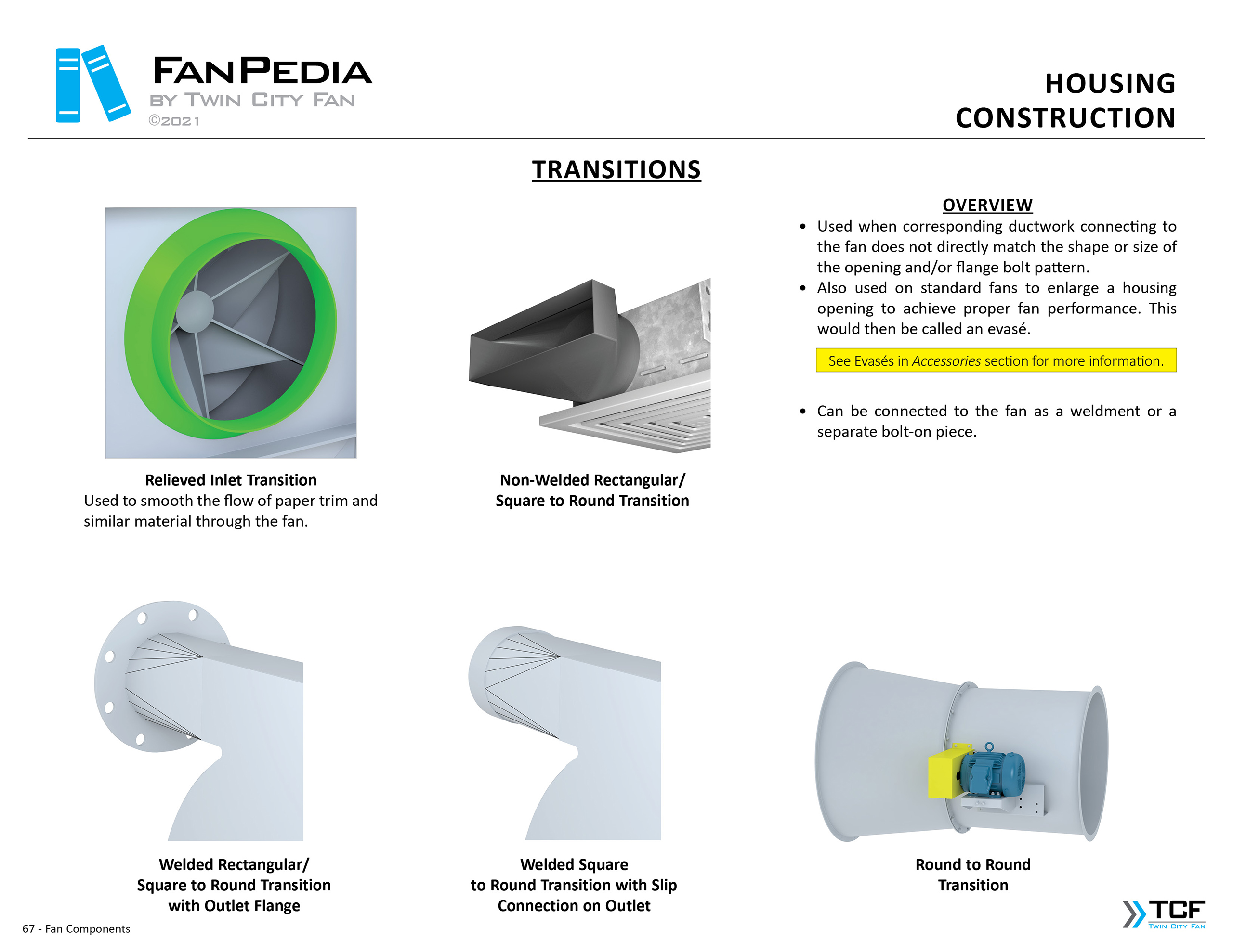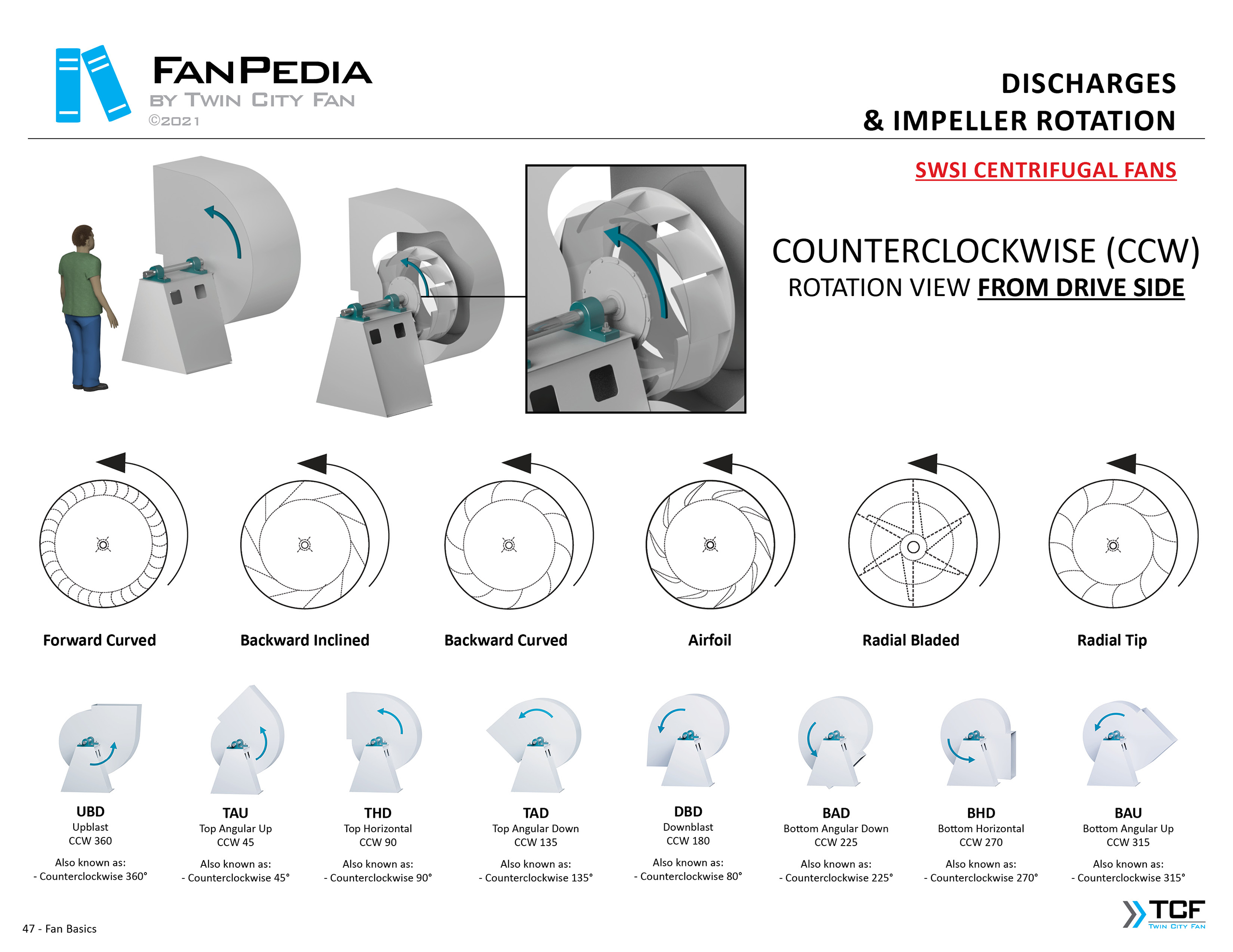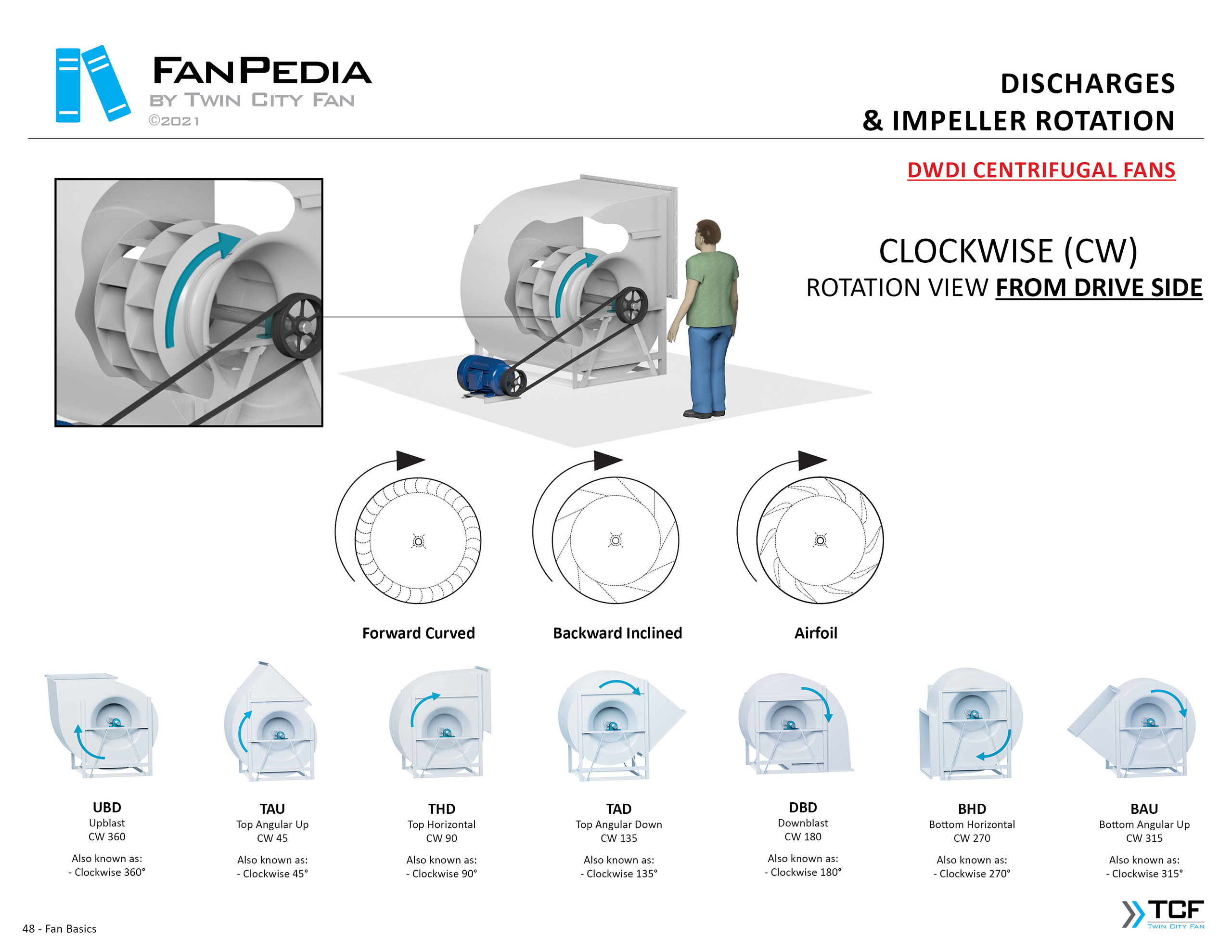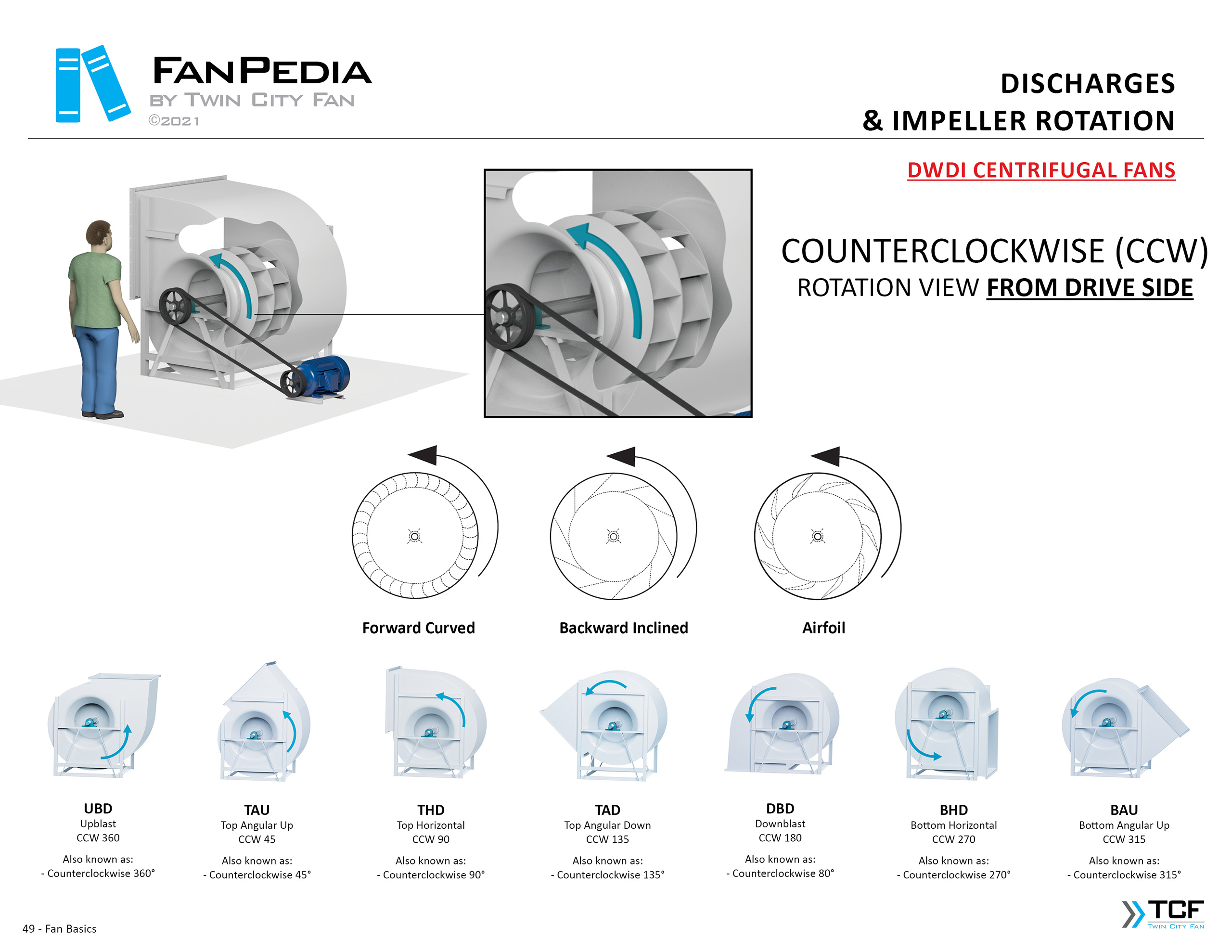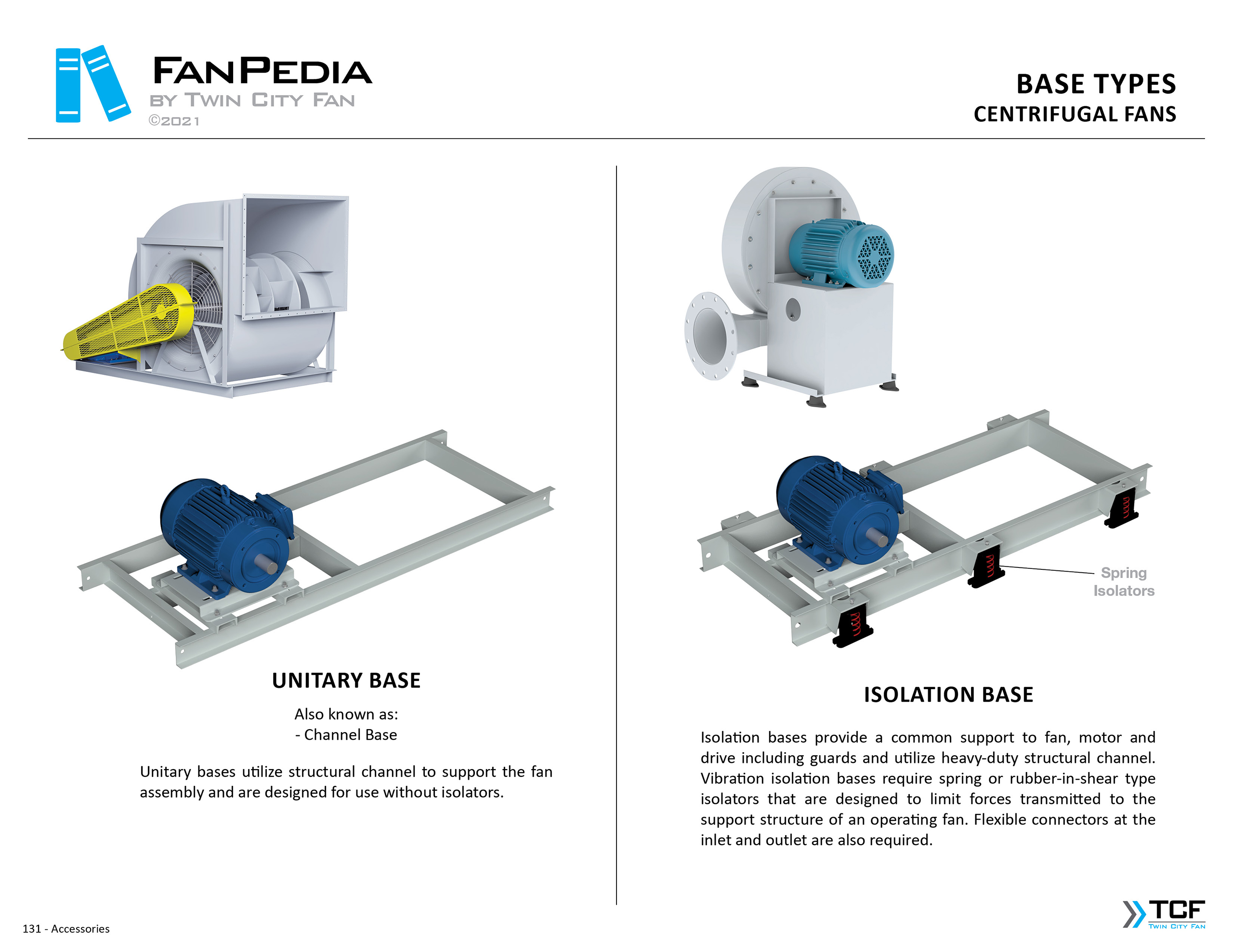 FanPedia The Fan & Blower Encyclopedia (click on thumbnails to view image galleries) Fan Basics Fan Types Exploded Views Fan Arrangements Impeller Types, Impeller Orientation & Hub Types Discharges & Impeller Rotation Impeller Airflow & Rotation (Axial Fans) Motor Positions Fan components Housing Construction Motors Motor Bases Shafts Pedestals Inlet Funnels / Venturis (Centrifugal) Bearing Types, Accessories & Modifications Fan Construction Spark Resistant Construction High Temperature Construction Insulated Fans Nominally Leak-Tight Construction RTO Construction High Moisture Construction Swingout & Clamshell Construction Fan Accessories Common Accessories Shafts Pedestals Base Types Vibration Isolation Dampers Inlet Vanes Grounding Devices Inlet Boxes Evasés Drain & Weep Holes Motor Positioners Shaft Seals Split Housings Piezometer Rings Technical Descriptions