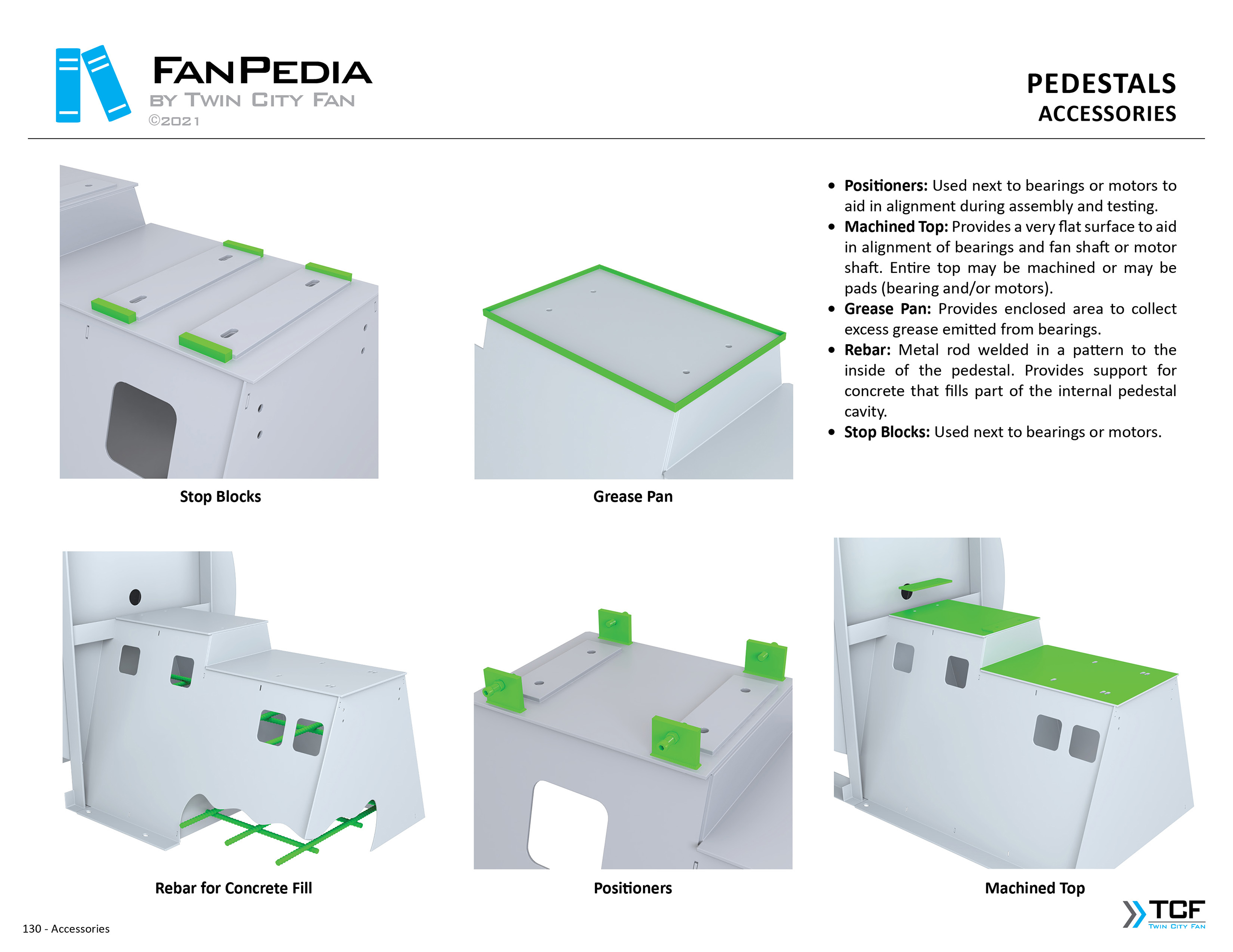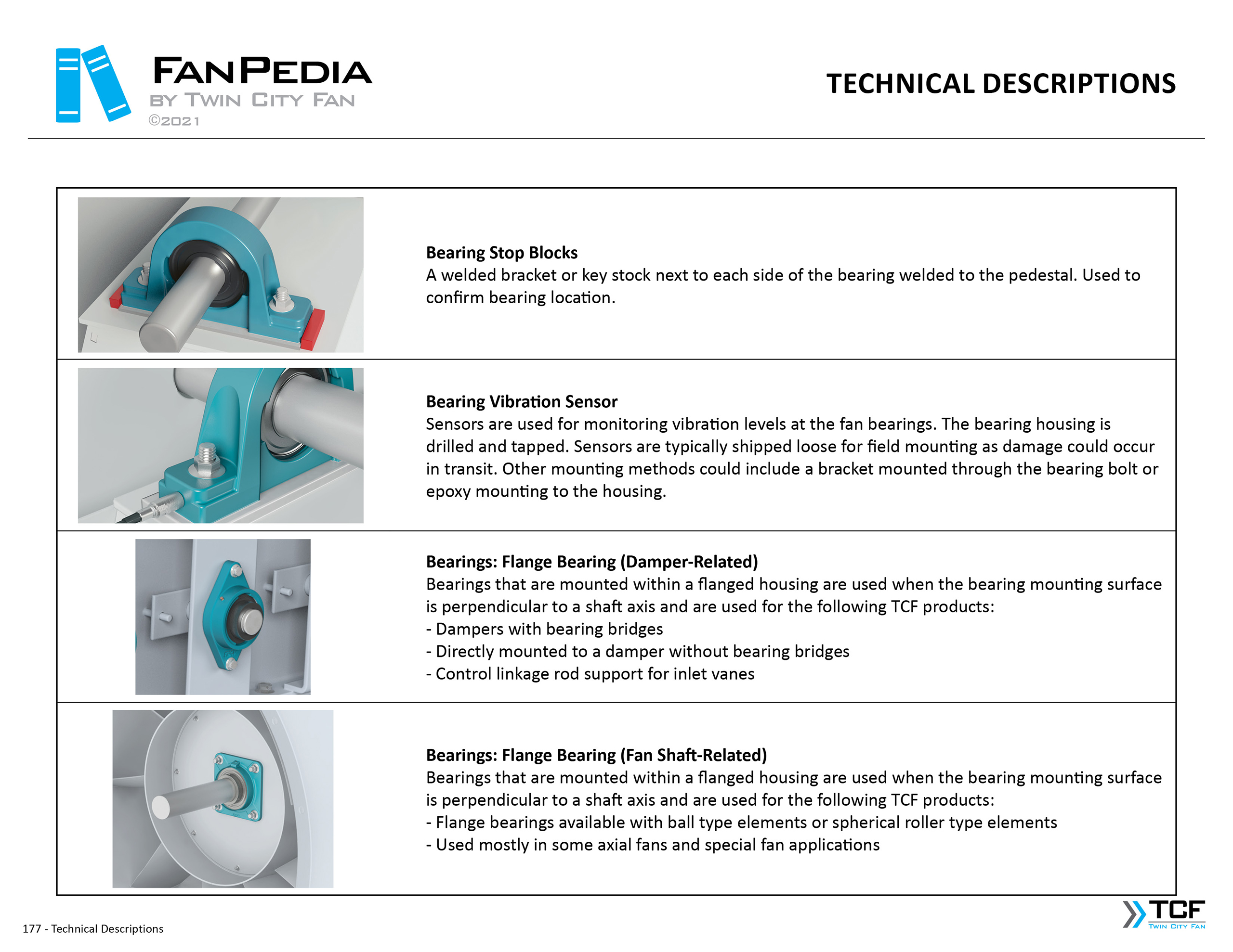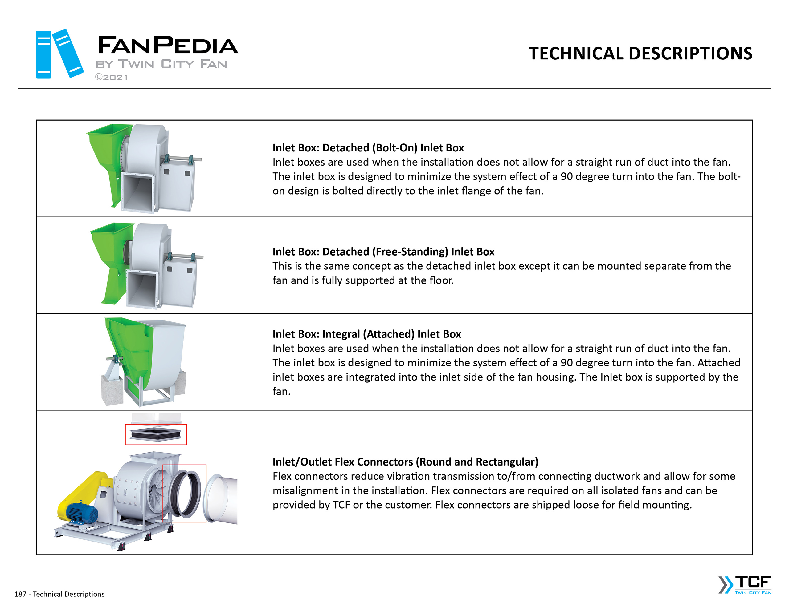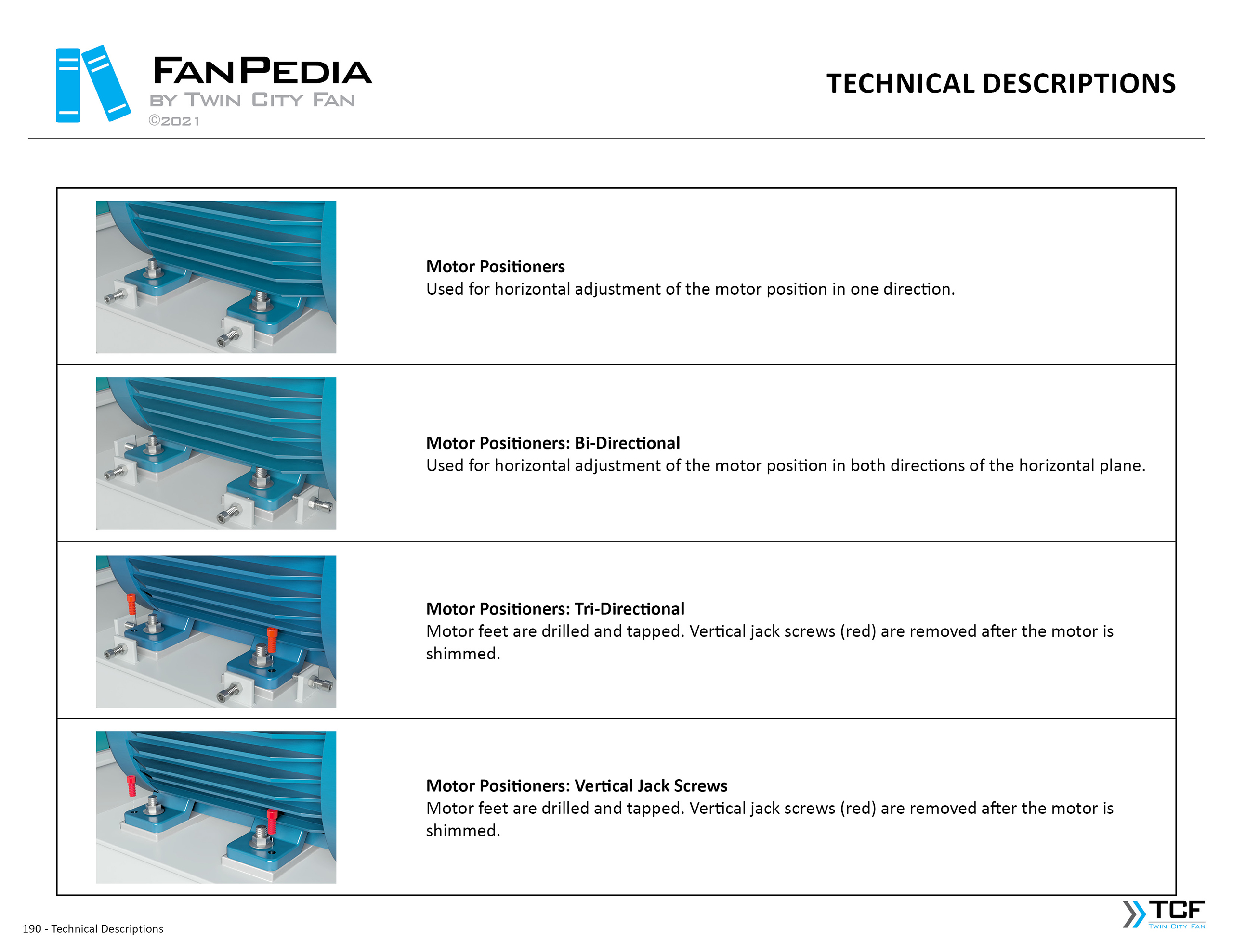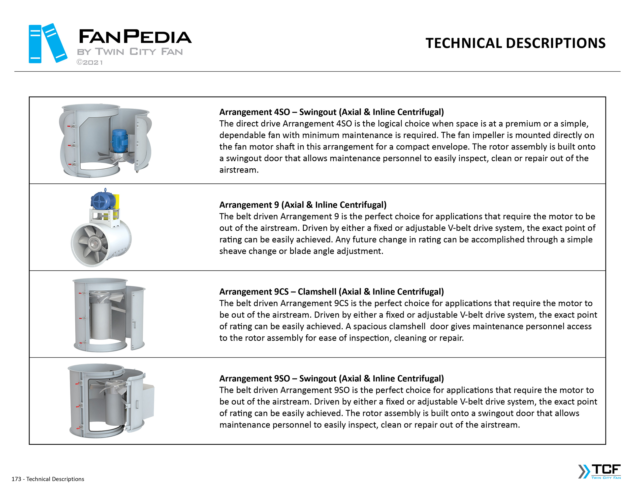 FanPedia The Fan & Blower Encyclopedia (click on thumbnails to view image galleries) Fan Basics Fan Types Exploded Views Fan Arrangements Impeller Types, Impeller Orientation & Hub Types Discharges & Impeller Rotation Impeller Airflow & Rotation (Axial Fans) Motor Positions Fan components Housing Construction Motors Motor Bases Shafts Pedestals Inlet Funnels / Venturis (Centrifugal) Bearing Types, Accessories & Modifications Fan Construction Spark Resistant Construction High Temperature Construction Insulated Fans Nominally Leak-Tight Construction RTO Construction High Moisture Construction Swingout & Clamshell Construction Fan Accessories Common Accessories Shafts Pedestals Base Types Vibration Isolation Dampers Inlet Vanes Grounding Devices Inlet Boxes Evasés Drain & Weep Holes Motor Positioners Shaft Seals Split Housings Piezometer Rings Technical Descriptions