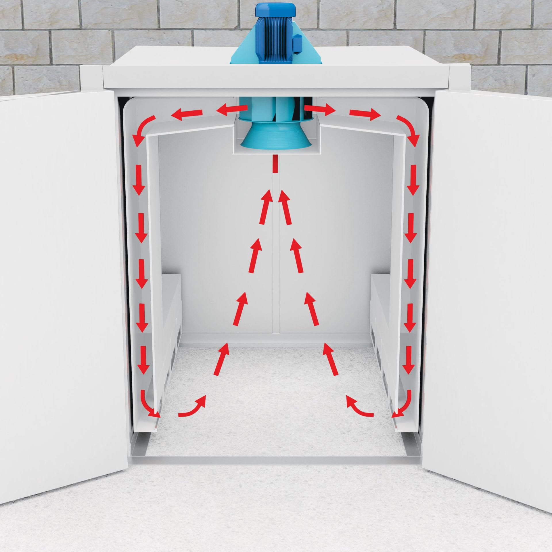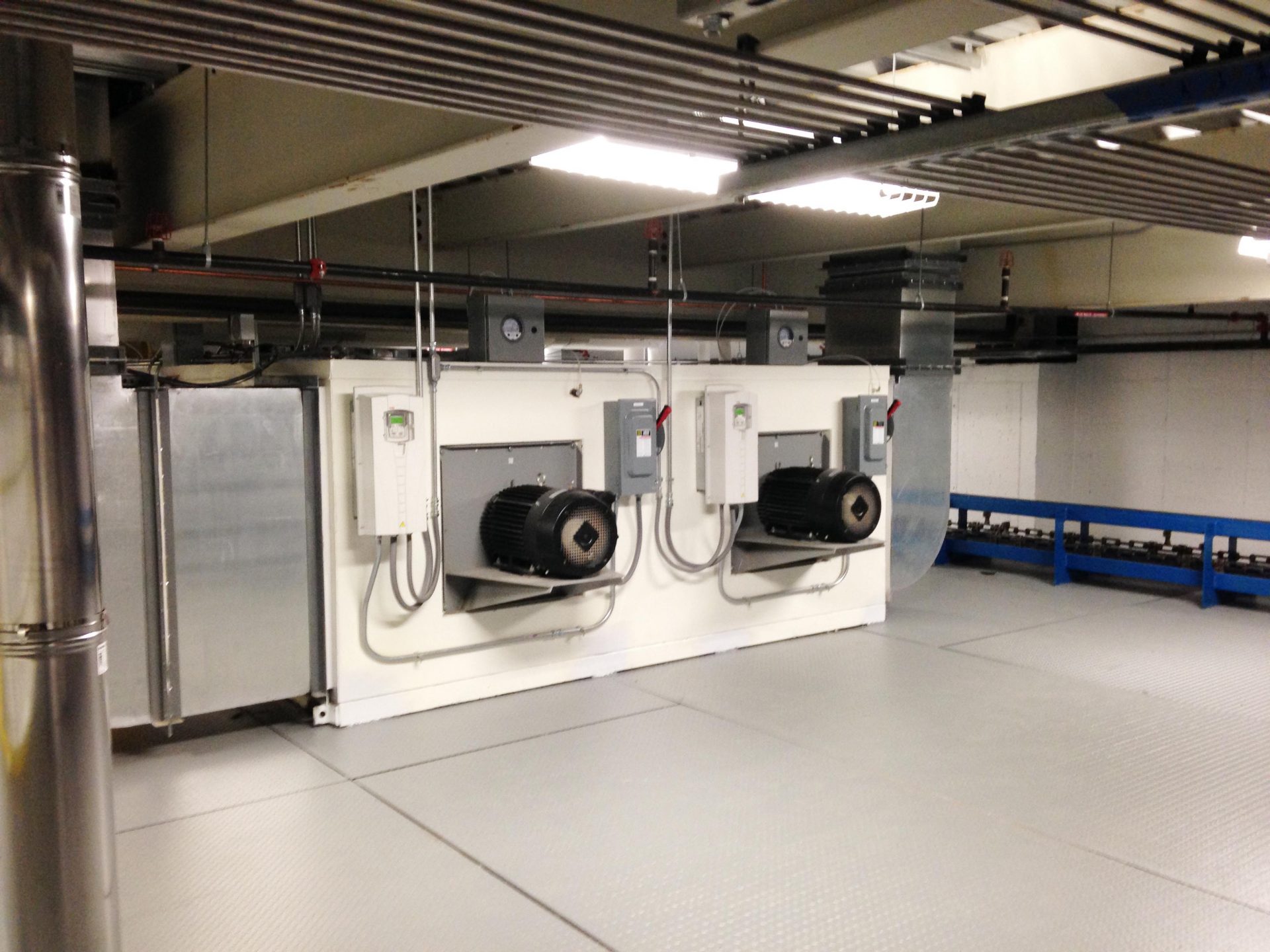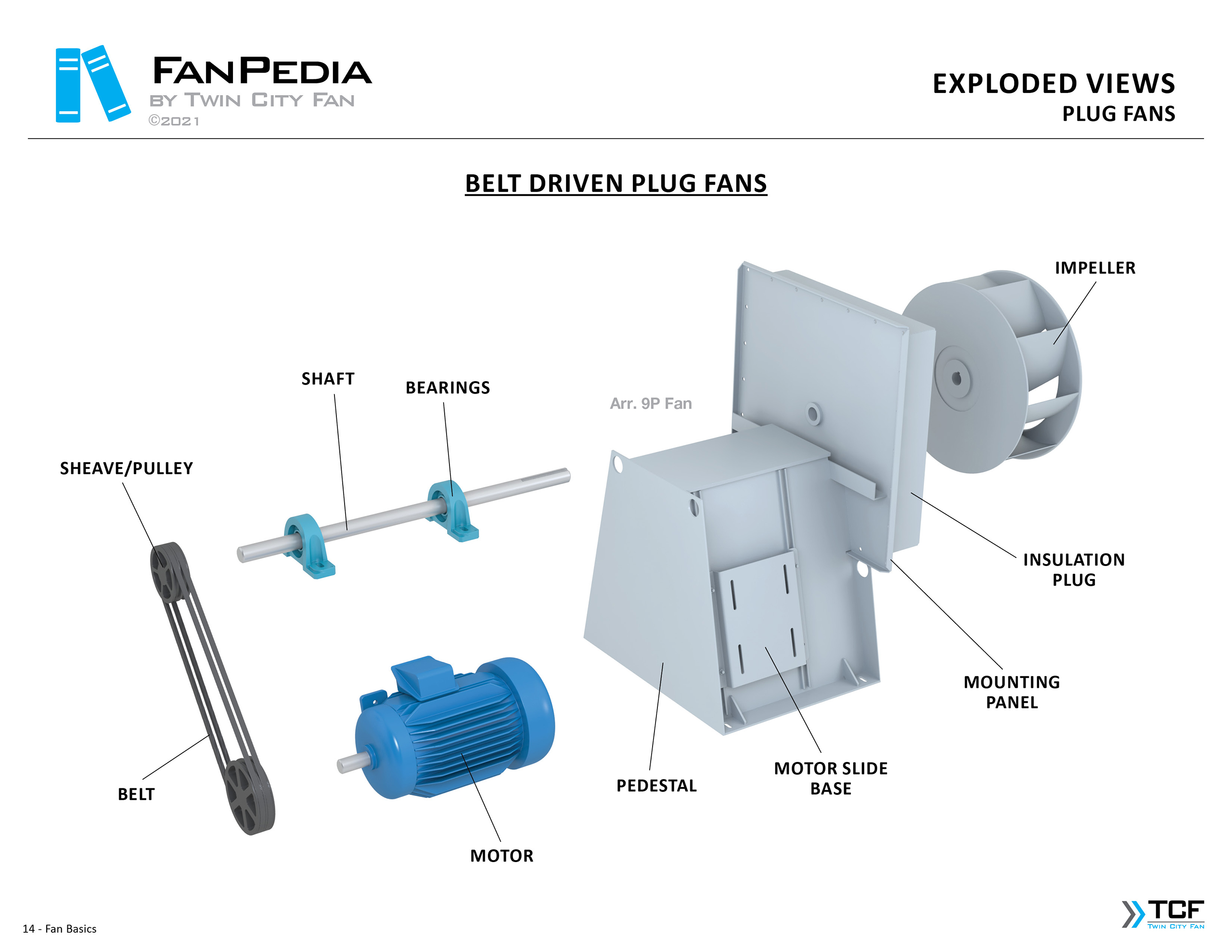 Plug fans offer great versatility for complex system configurations. Equipped with a gusseted mounting panel, they are mounted directly to the plenum wall separating the motor and drive components from the process air. Plug fans provide high efficiency recirculation air with the benefit of easy installation and removal.