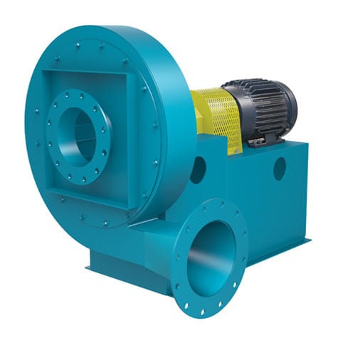 The TBNS Turbo Pressure Blower is used for applications requiring lower volumes and higher air pressures. The radial steel impeller of the TBNS is designed to handle fumes, light particulates and temperatures up to 600°F (315°C).